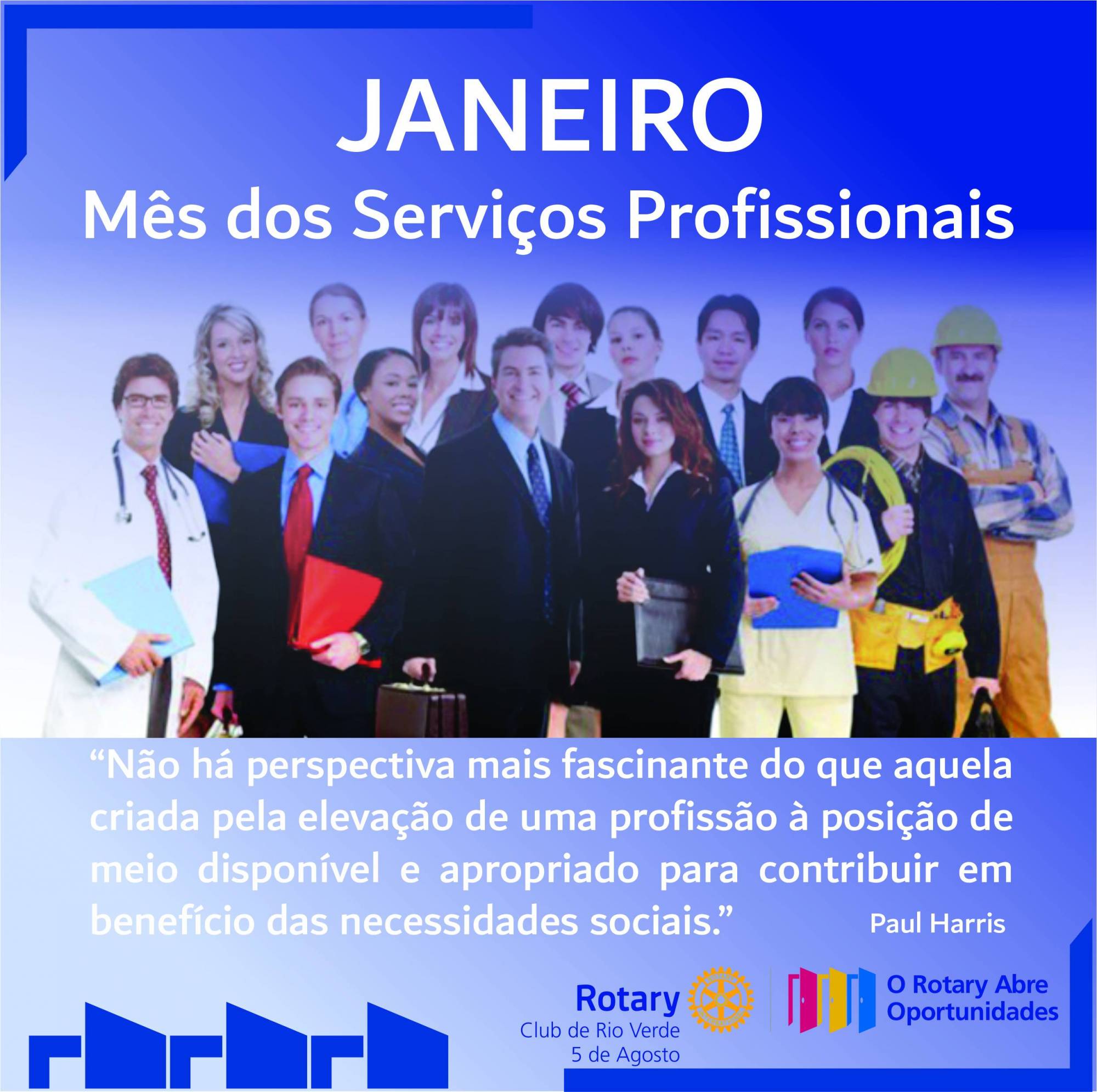 É em janeiro que colocamos em evidência os Serviços Profissionais, que é uma das nossas Avenidas de Serviços que foi formada com base no segundo Objetivo do Rotary: