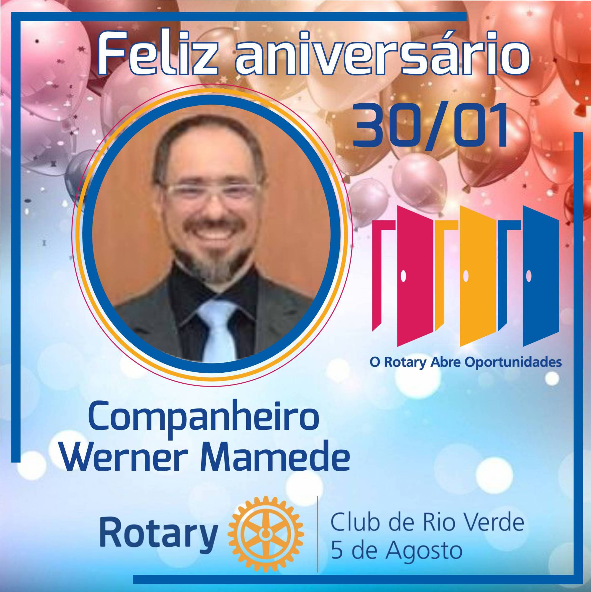 No dia 30/01/2021 comemoramos o aniversário do nosso companheiro Werner Mamede. Parabéns e Muitas felicidades! #rotary5deagosto #rotaract #rotaryclub #rotaryinternational #rotarybrasil #rotarybrazil #rotariano #endpolionow #distrito4770 #interact #rotariano #rotarianoemacao #orotaryabreoportunidades #rioverdegoias #rotary #conectamos #inspiramos #aprendemos #transformamos
