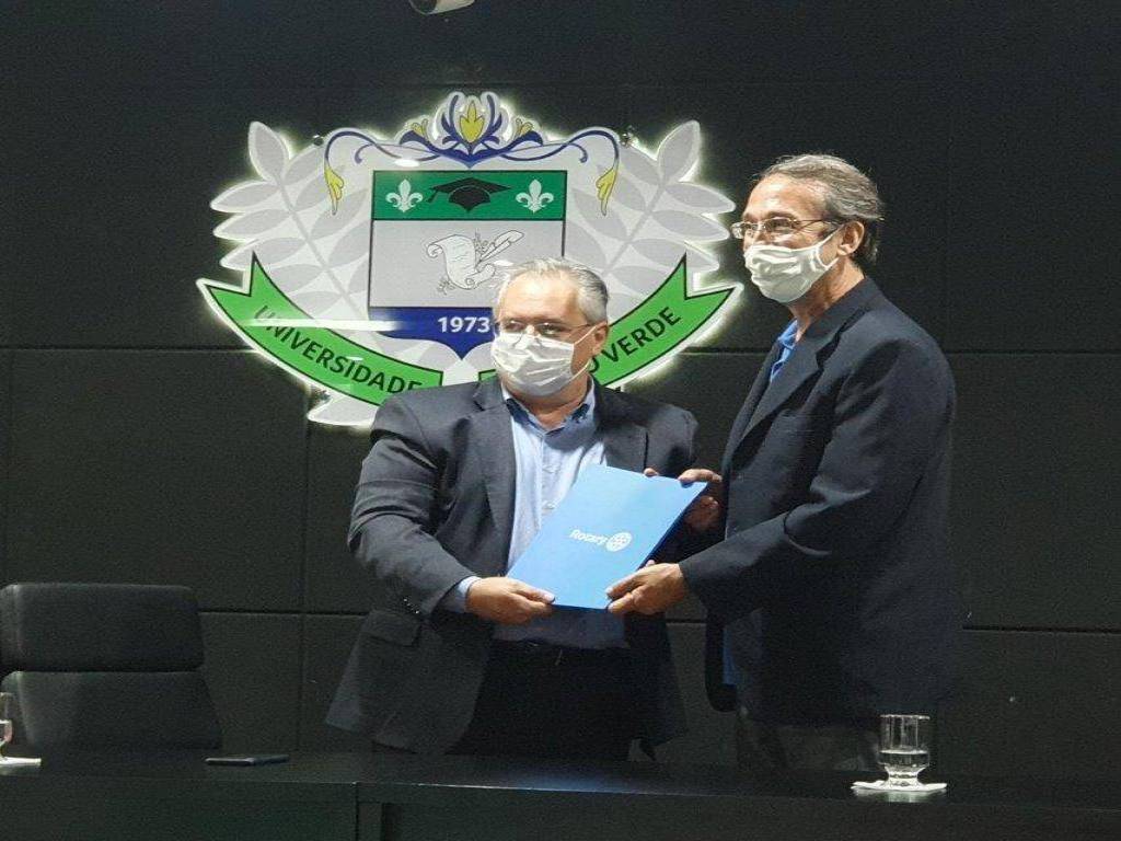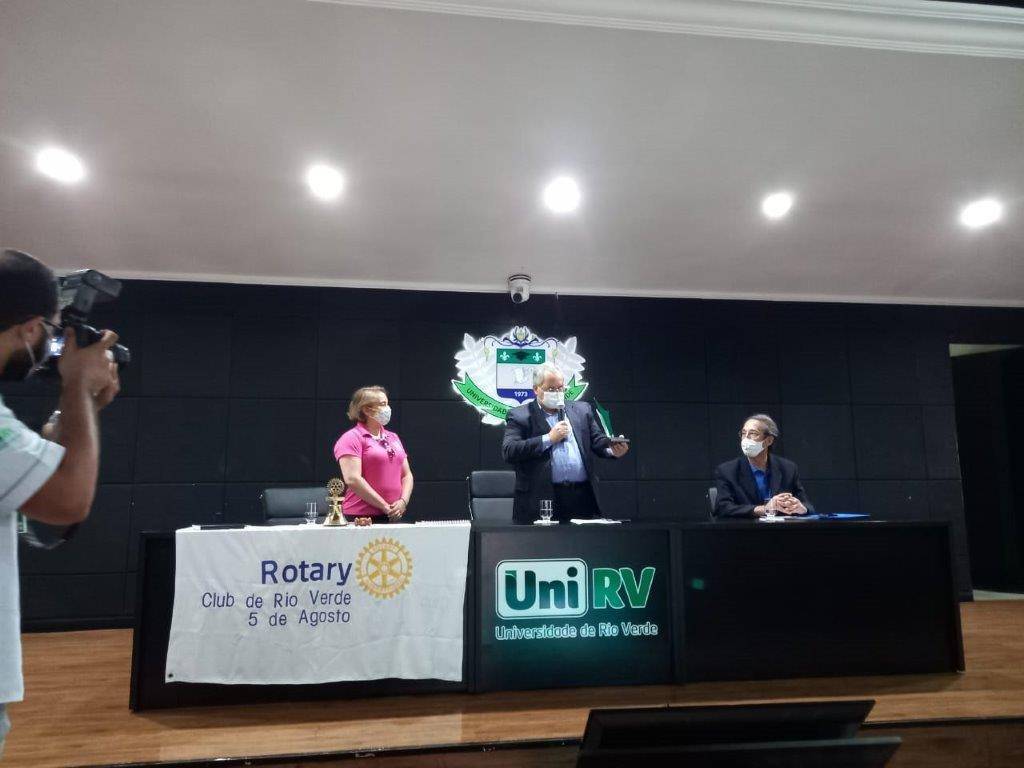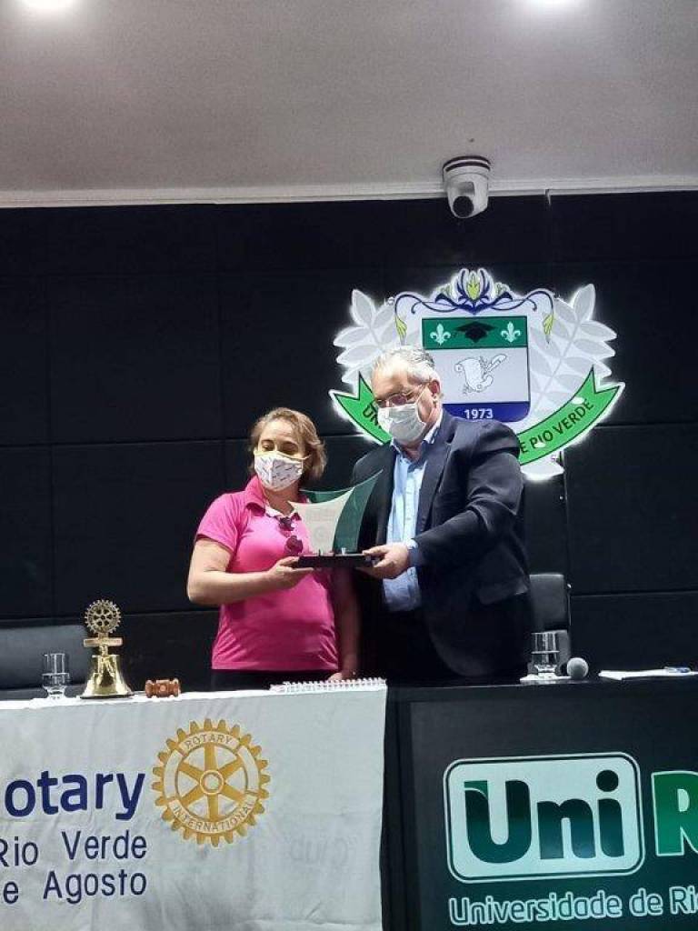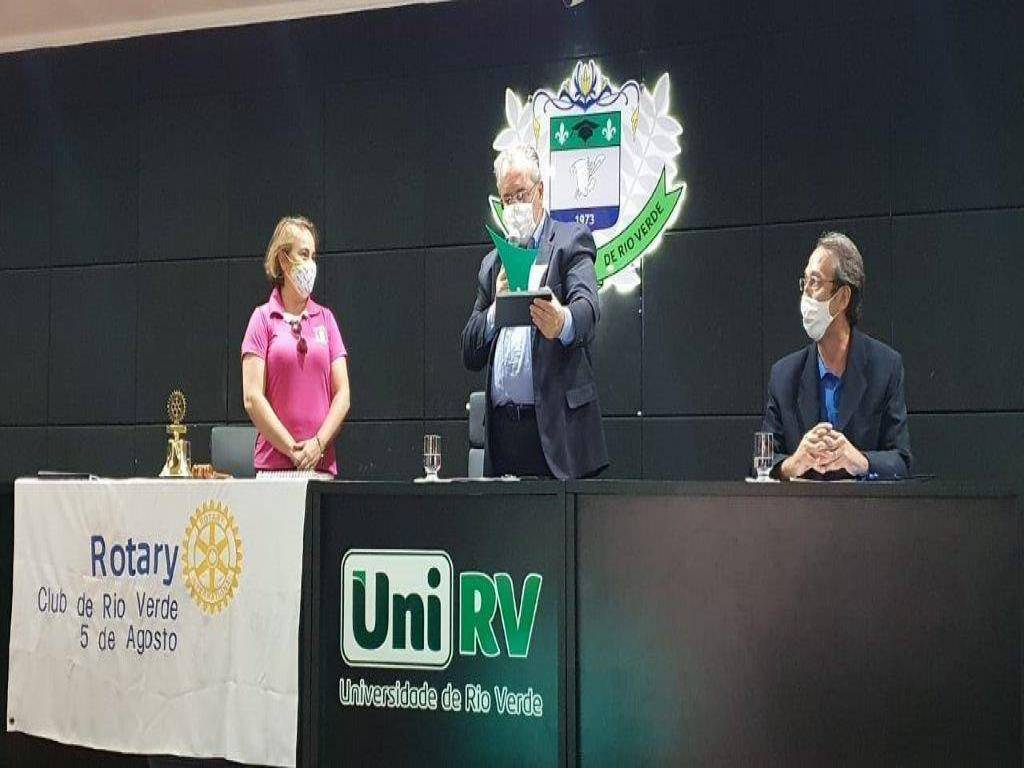 Durante a visita oficial da governadora Fabiana Franco ao R. C. de Rio Verde 5 de Agosto estivemos na UNIRV para assinatura do termo de parceria do Rotary 5 de Agosto com a UNIRV no Projeto "Bebê à Bordo", e na ocasião o presidente Roberto Bessa de Araújo homenageou o Magnífico Reitor da UNIRV como Associado Honorário do R. C. de Rio Verde 5 de Agosto. O Reitor Alberto Barella Netto já foi sócio fundador de outro clube rotário em Rio Verde, passou por diversos cargos, ,incluindo a presidêcnia e também foi Governador Assistente na nossa área, e é companheiro Paul Harris.