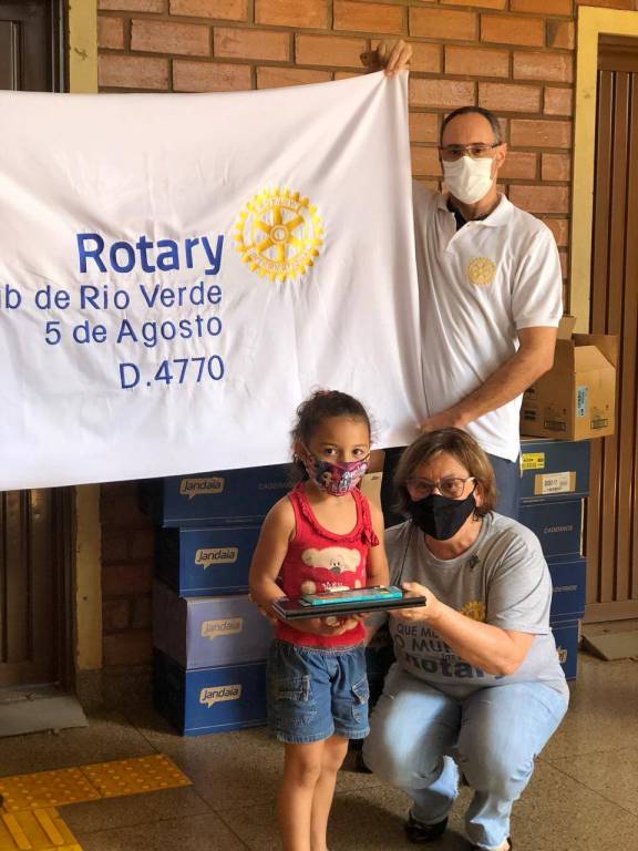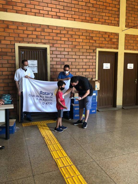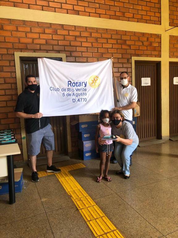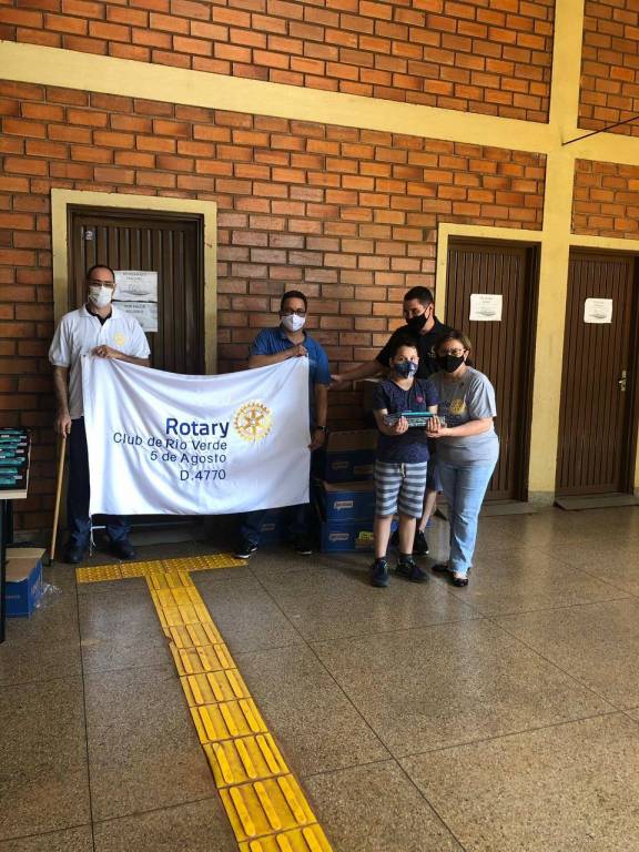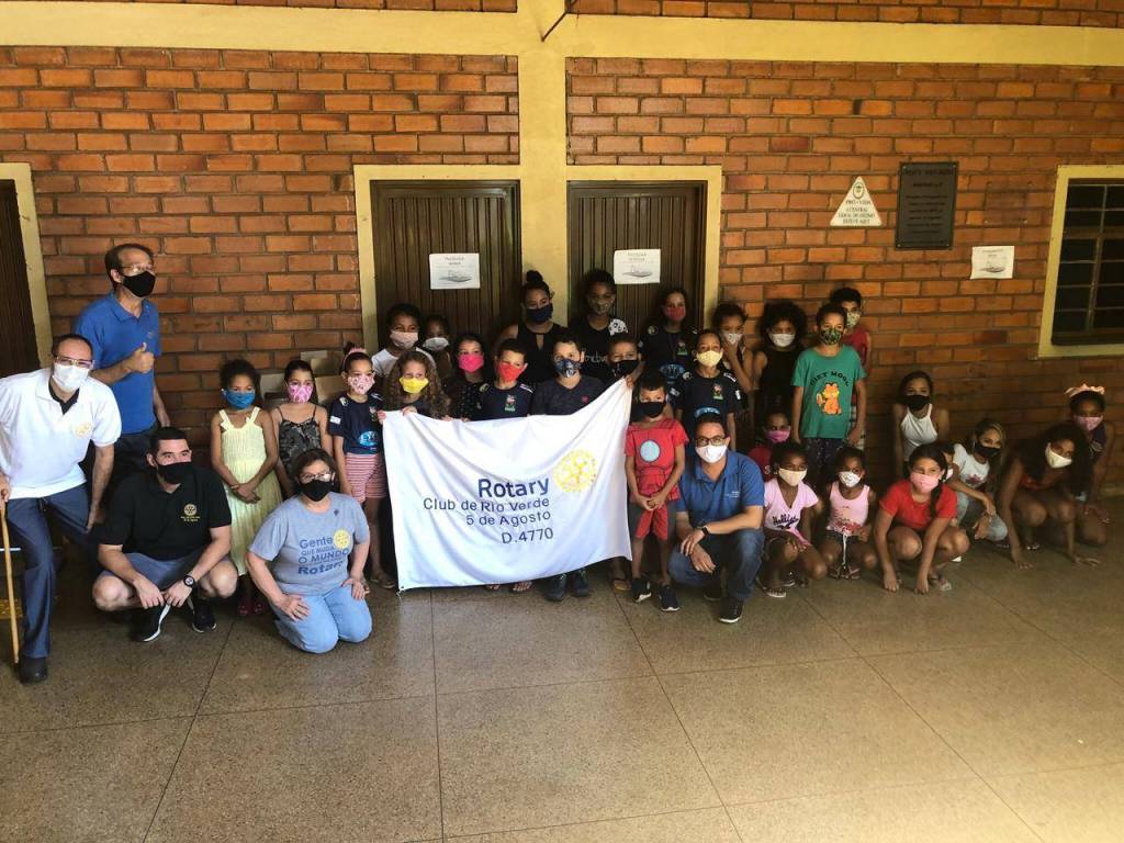 Pelo quarto ano consecutivo o Rotary Club de Rio Verde 5 de Agosto doa materiais escolares, tais como: cadernos, lápis, borracha, lápis de cor, canetas azul e vermelha, à 100 crianças do Bairro Santa Cruz II que em finais de semana frequentam o Posto Assistencial Paulo Campos.
