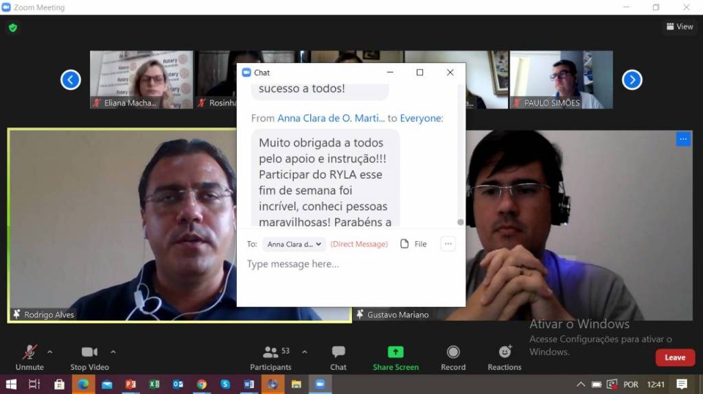 A ex-intercambista ANNA CLARA DE OLIVEIRA MARTINS, recém-chegada da Alemanha, participou do RYLA das Áreas VI e XII, ocorrido nesse último final de semana, dias 27 e 28 de fevereiro de 2021.