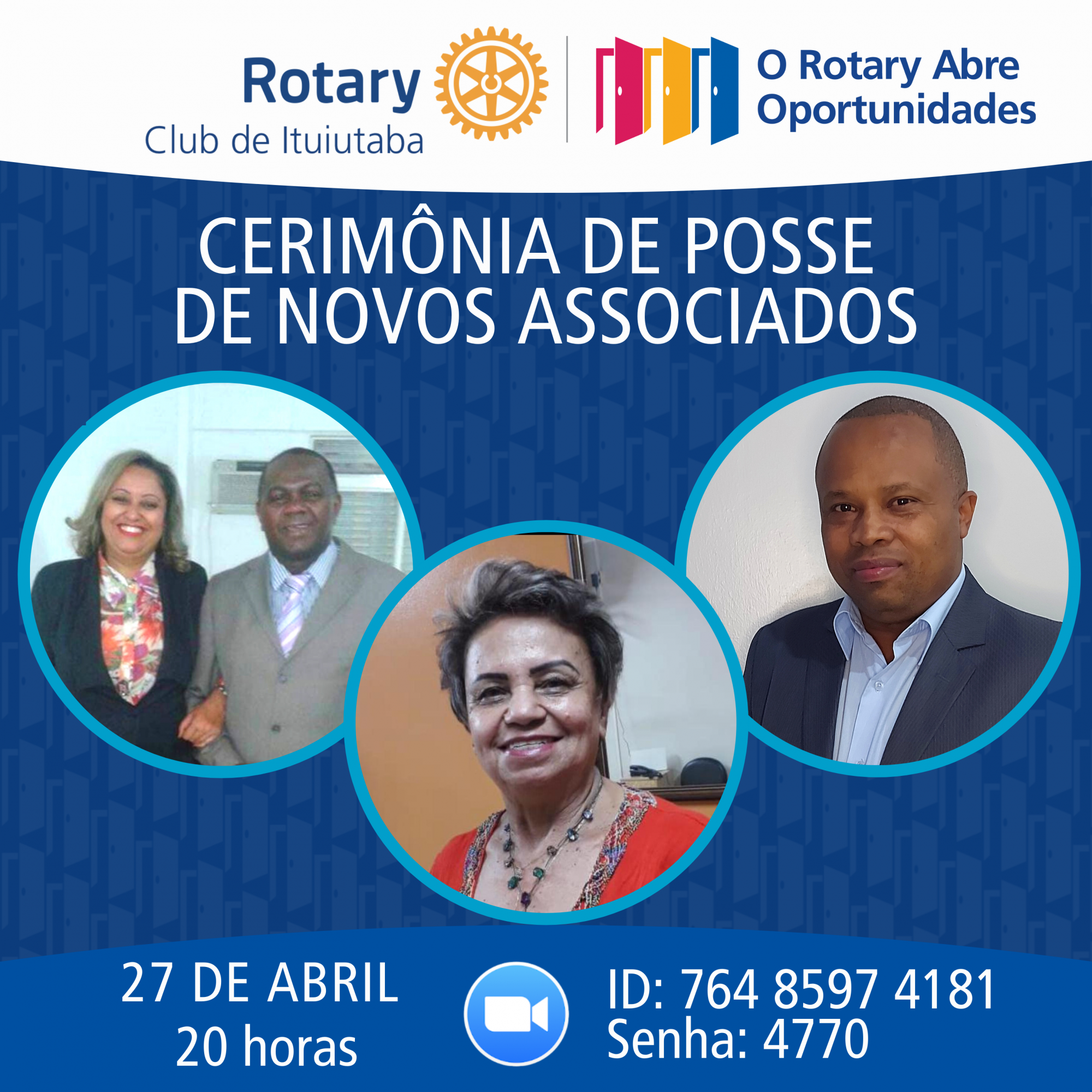 Na terça-feira dia 27 a família rotária do Rotary Club de Ituiutaba cresceu. Com a admissão de mais 4 associados. De forma virtual foi realizada a posse dos companheiros Elson, Miramar, Doralice e Edmar, uma noite muito feliz.
