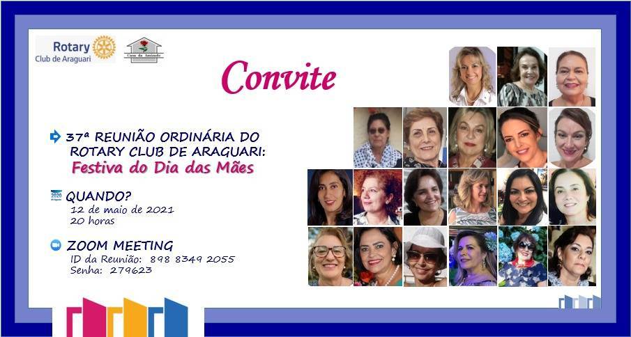 Esse é o saldo da reunião virtual festiva em homenagem às mães do Rotary Club de Araguari, ocorrida no dia 12 de maio, tendo participado rotarianos e rotarianas, damas da Casa da Amizade, Interact Club, amigos e convidados.