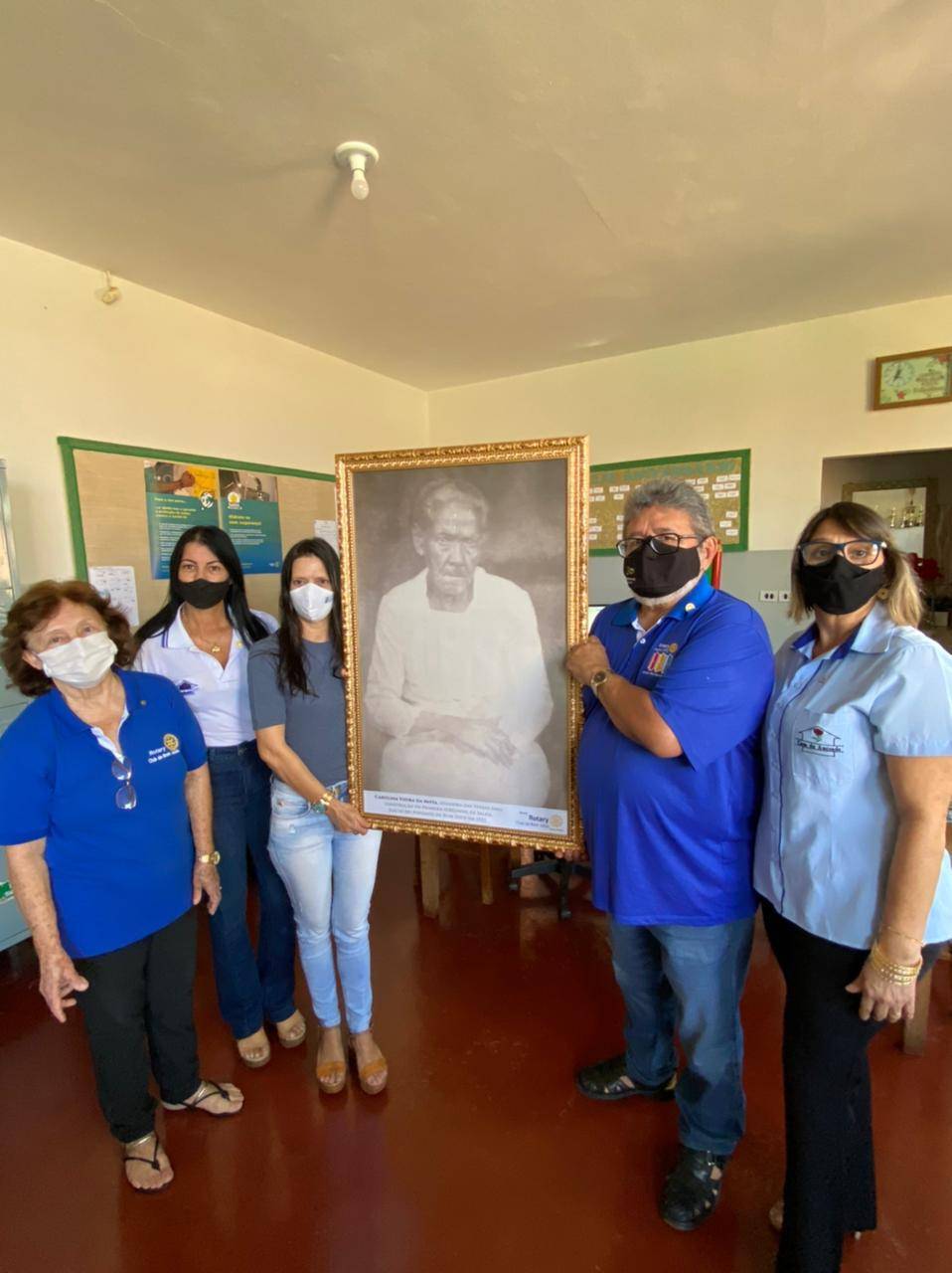 ENTREGA DE UMA FOTO DE CAROLINA VIEIRA DA MOTA, DOADORA DE TERRAS PARA CONSTRUIR PRIMEIRA IGREJA EM BOM JESUS GO., AO COLÉGIO ESTADUAL MOISÉS SANTANA.