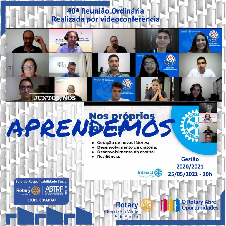 40ª REUNIÃO ORDINÁRIA DO ROTARY CLUB DE RIO VERDE 5 DE AGOSTO - POR VIDEOCONFERÊNCIA