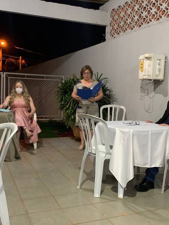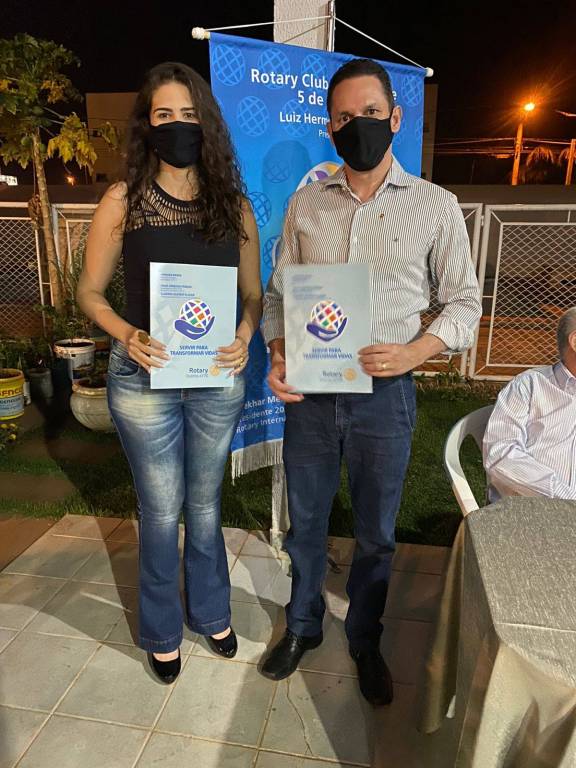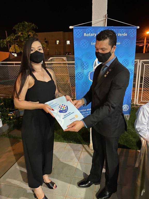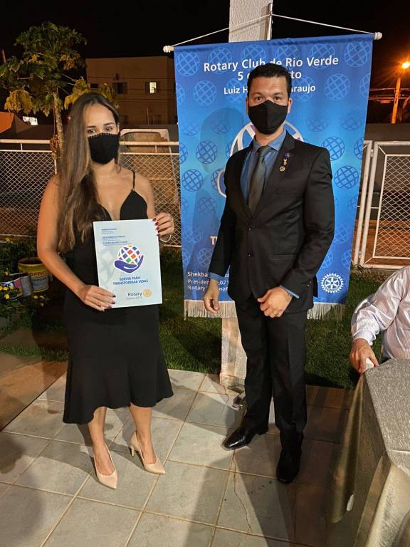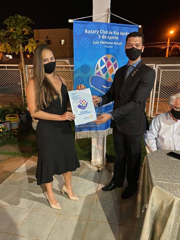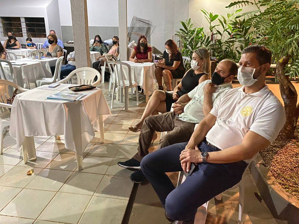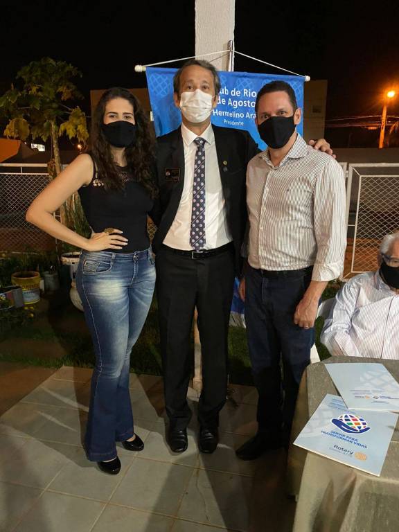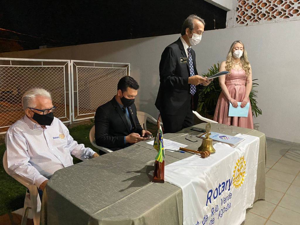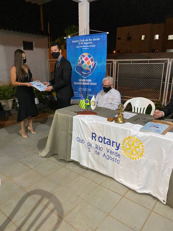 São eles: Natália apadrinhada pelo presidente Luiz Hemelino; Núbia apadrinhada pelo companheiro Leandro; e o casal Polianny e Daniel apadrinhados pelo companheiro Roberto. Em reunião exclusivamente para admissão dos associados, tivemos a visita do companheiro Ailson Orotides de Rezende do Rotary Club de Mineiros; a Dra. Liliana Lima e seu esposo Eduardo Felix de Lima, convidados do companheiro Roberto Bessa; e do Dr. Carlos Eduardo Carvalho Sabino esposo e convidado da companheira Bárbara.