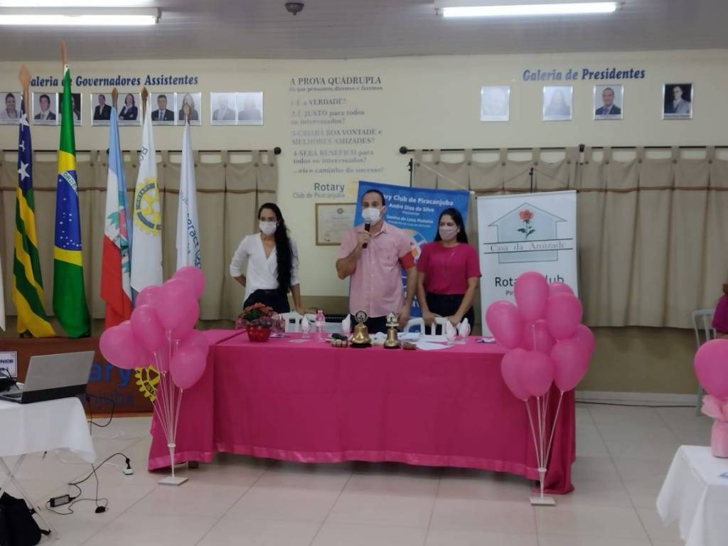 Na última quarta-feira (20) o Rotary Club de Piracanjuba realizou uma reunião em conjunto com a Casa da Amizade cujo os focos principais foram o Outubro Rosa e o Dia Mundial de Combate a Pólio. Dra. Hayanna Corrêa de Siqueira Gomes, companheira da Casa da Amizade, falou sobre a importância da prevenção e os cuidados necessários que as mulheres devem ter não só no mês de outubro, mas no seu dia a dia para o diagnóstico precoce do câncer de mama. A companheira Cassieth de Souza Carvalho e a convidada Renata Quinta deram depoimentos emocionantes sobre o tratamento e reforçaram que o auto cuidado deve ser mesmo diário. O Presidente André Dias falou dos Projetos de combate a Pólio, destacando as divulgações realizadas nos meios de comunicação de Piracanjuba neste mês de outubro, reforçando o convite aos pais e responsáveis para levarem suas crianças para se vacinarem contra a Pólio. Destacou também, o dia 24 de outubro que é o Dia Mundial de Combate a Pólio.