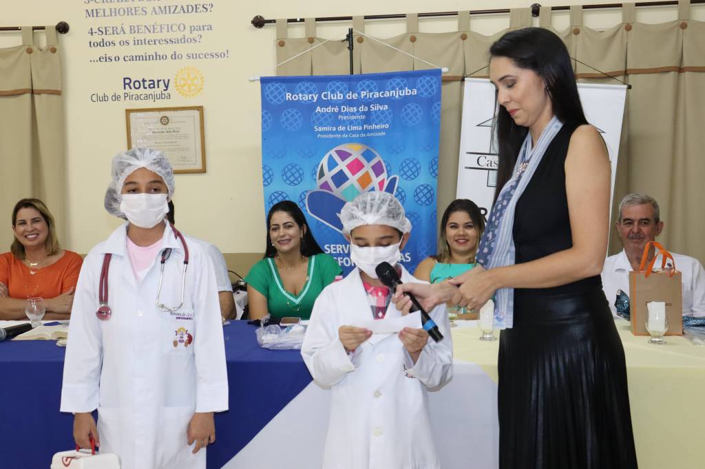 O Rotary Club de Piracanjuba e a Casa da Amizade realizaram nesta quarta-feira (27) a sua reunião festiva do mês de outubro, onde foi comemorado os 37 anos de fundação do Club. O Presidente André Dias da Silva e a Presidente da Casa da Amizade Samira de Lima Pinheiro preparam tudo com muito carinho. O presidente André fez uma mensagem destacando os lemas rotários destes 37 anos, homenageou os presidentes que o antecederam e apresentou a história do Clube, destacando o Presidente de RI, Governadores, Presidentes, Conselho Diretor e as realizações de cada ano rotário. Foram homenageados os profissionais em suas datas comemorativas do mês de outubro. (Dia dos Professores, Dia do Médico e Dia do Dentista). Destacamos o dia das Crianças e tivemos ainda uma linda coroação de Nossa Senhora com participação do companheiro associado honorário João Carlos. Os aniversariantes do mês de outubro também foram homenageados. As homenagens tiveram a participação mais que especial do Interact Club de Piracanjuba e do Rota Kids.