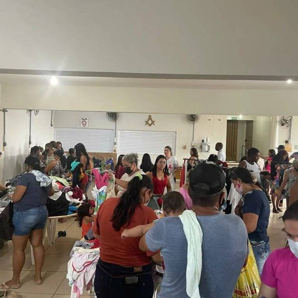 Bazar Solidário realizado em Mineiros, Goiás, no Salão da Loja Maçônica Dom Pedro I. Contou com o trabalho de associados e voluntários. Muitas pessoas prestigiaram o evento.