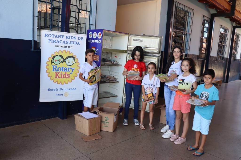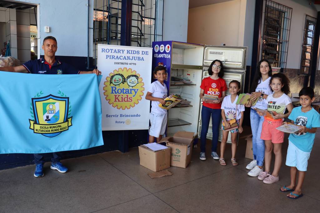 O Rota Kids de Piracanjuba, em parceria com a Casa da Amizade, Rotary Club de Piracanjuba, Coapil e Academia Piracanjubense de Letras e Artes entregou à Escola Militarizada Mundo Mágico a “Geladoteca Cultural” com dezenas de livros doados pela Secretaria Municipal de Educação de Piracanjuba, onde na época, a Secretária era a companheira Lenizia Alves Canêdo. Através deste projeto, os alunos da referida escola poderão desenvolver ainda mais o hábito de leitura. Externamos também os agradecimentos à direção da Escola Militarizada Mundo Mágico por acolher este projeto. A Geladoteca Cultural foi idealizada no final da Gestão 2020-21 com a então presidente Maria Júlia de Oliveira Pontes e concluído na Gestão 2021-22 com a presidente Manuela Dias de Lima. O servir rotário é isto: uma sequência de trabalhos e ações que visam servir e desenvolver a nossa comunidade.