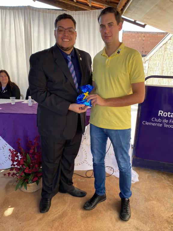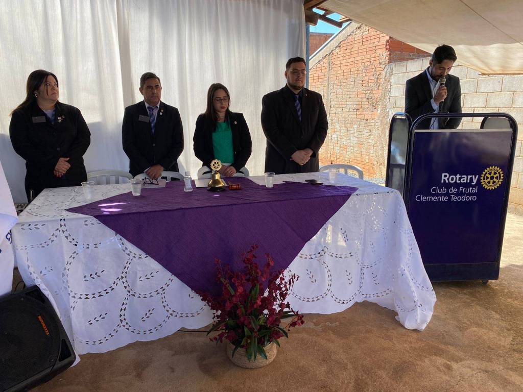 O Rotary Club de Frutal Clemente Teodoro realizou no último domingo (26) a transmissão de cargos do seu Conselho Diretor para a Gestão 2022-23. A companheira Daybyane da Silva Santana passou a presidência para o companheiro Felipe Freitas de Paula que estará liderando o Clube na gestão 2022-23. O Governador Assistente da Área XII, Cleber Santa Rosa e sua esposa Veruska Santa Rosa, Coordenadora Assistente, levaram aos empossados a mensagem do Governador 2022-23 Paulo Simões. Sucesso aos empossados! Que, inspirados no lema rotário 2022-23 “Imagine o Rotary”, alcancem seus objetivos.