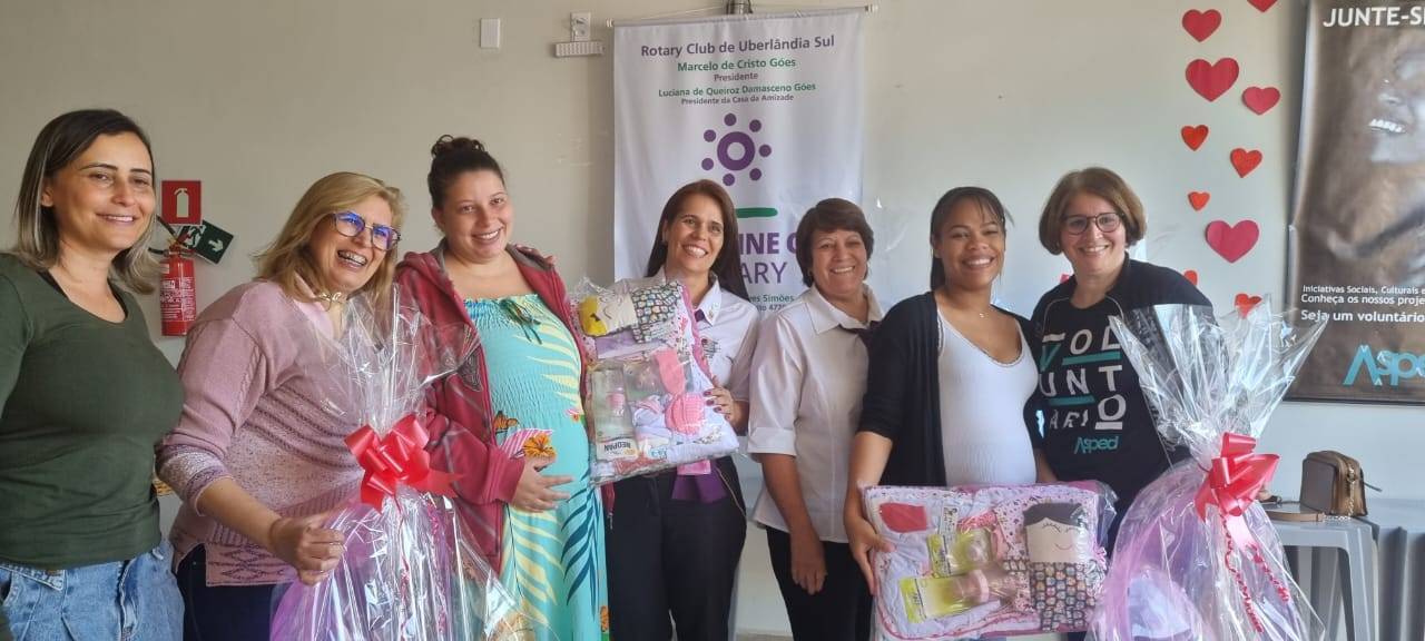Por isso, fomos procurar a ASPED (associação presbiteriana de Educação e Assistência Social) que se prontificou em ajudar a reunir profissionais que pudessem instruir essas futuras mamães. Finalmente, como resultado de muito trabalho, foi desenvolvido um curso de 5 dias, ensinando o “bebê-a-bá” dos cuidados com o bebê, o curso conta com 5 encontros, com palestras com doulas, enfermeiras, nutricionistas, assistentes sociais e advogados, este último para orientar sobre os direitos da criança. Ao finalizar o curso, a Casa da Amizade do Rotary Clube de Uberlândia Sul entregará um enxoval completo para cada mamãe que participou do projeto Bebê-a-bá.