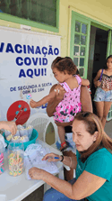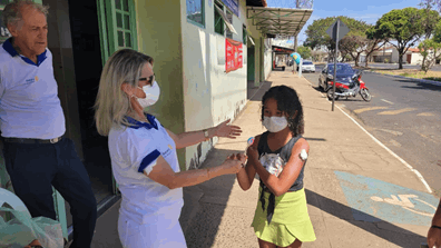 Novamente foram distribuídas as crianças pipoca, pirulitos e ainda o “certificado de coragem” desenvolvido pela Prefeitura que pós-vacina preenchido pela equipe rotariana e entregue as crianças e seus responsáveis.