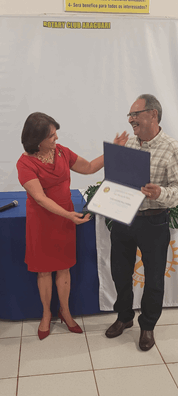 Finalizando o evento, o companheiro José Maria de Melo recebeu das mãos da presidente Vanda Lima o título de ‘Companheiro Paul Harris’, em reconhecimento à prestação de significantes serviços com o objetivo de fomentar a compreensão e a paz entre os povos do mundo, nesse ano que completa 40 anos como associado do Rotary Club de Araguari.