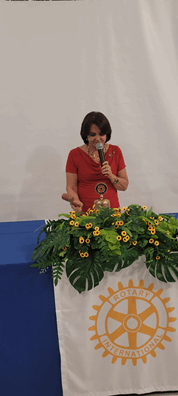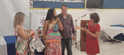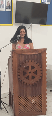 Com o tema “Amizade em Rotary”, a dama da Casa da Amizade, Patrícia Abreu, ressaltou o entusiasmo e a alegria gerados em reuniões, encontros e atividades realizadas pelos companheiros e damas, o que fortalece a amizade entre todos, criando vínculos profundos. Aproveitou e agradeceu pelo tempo que estiveram Patrícia e seu marido Renato Rito, em nosso convívio, visto que estão de mudança para sua cidade natal.