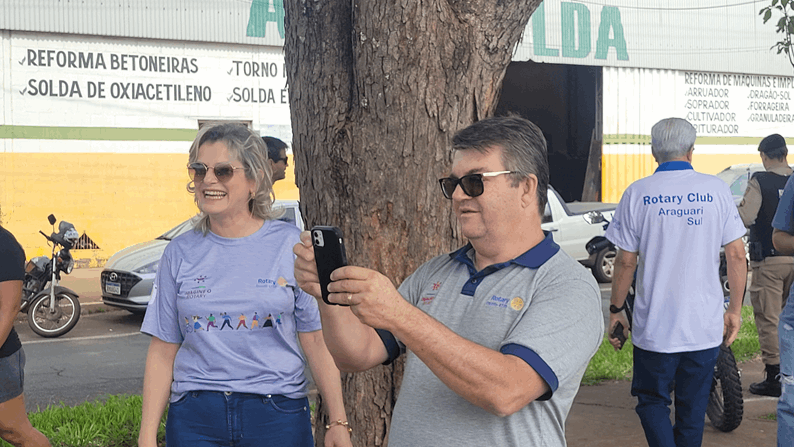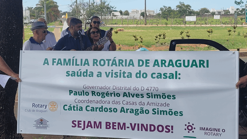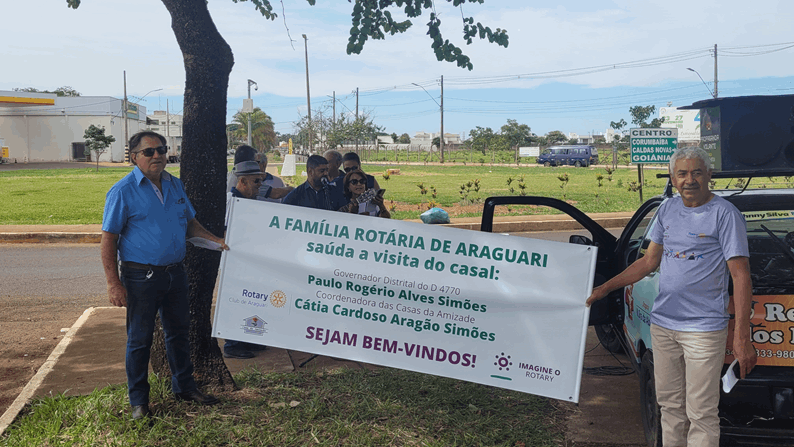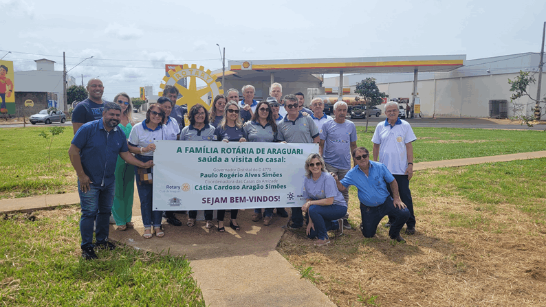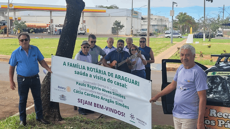O Governador Paulo Rogério Alves Simões foi recebido na data de 30 de novembro ao lado do marco rotário do trevo da MG223, conhecido como saída para Caldas Novas com a música “Peça Felicidade” de Composição de Diogo Melim e Gabriela Melim, música escolhida pelo casal Governador para representar o seu ano rotário, sendo cantado por Paulo Cesar Pereira “PC” e acompanhado pelos rotarianos do Club de Araguari ali presentes.