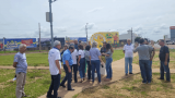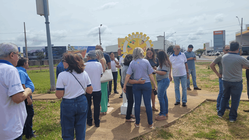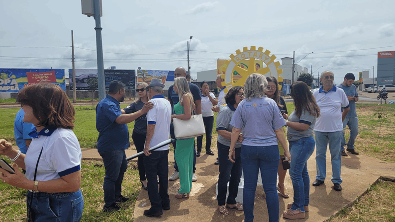 Logo após a recepção todos se dirigiram ao marco rotário para registro com fotos.
