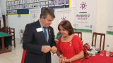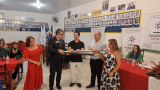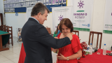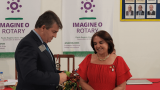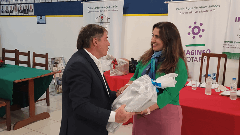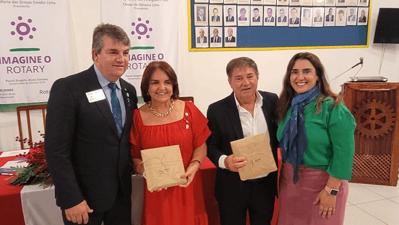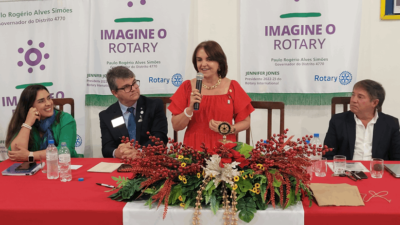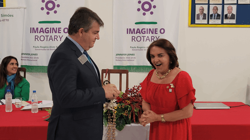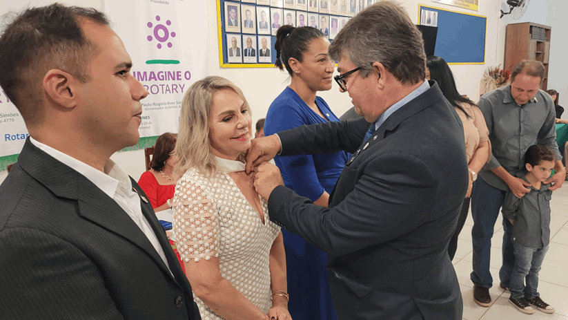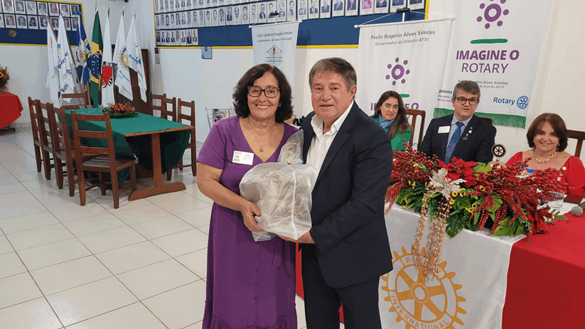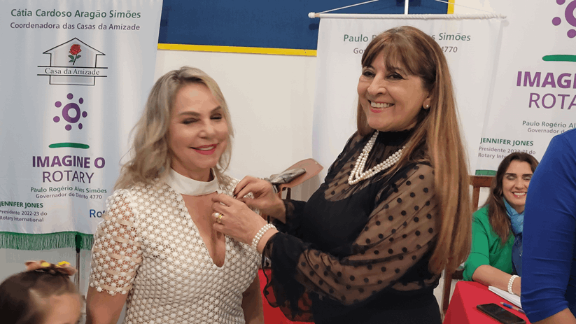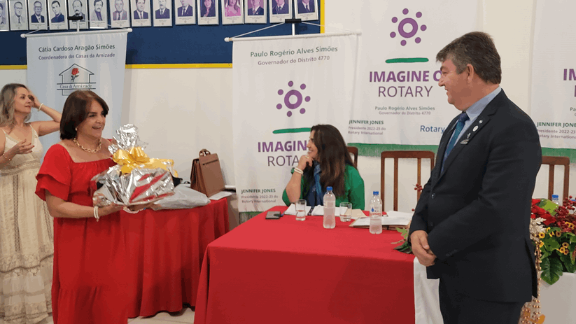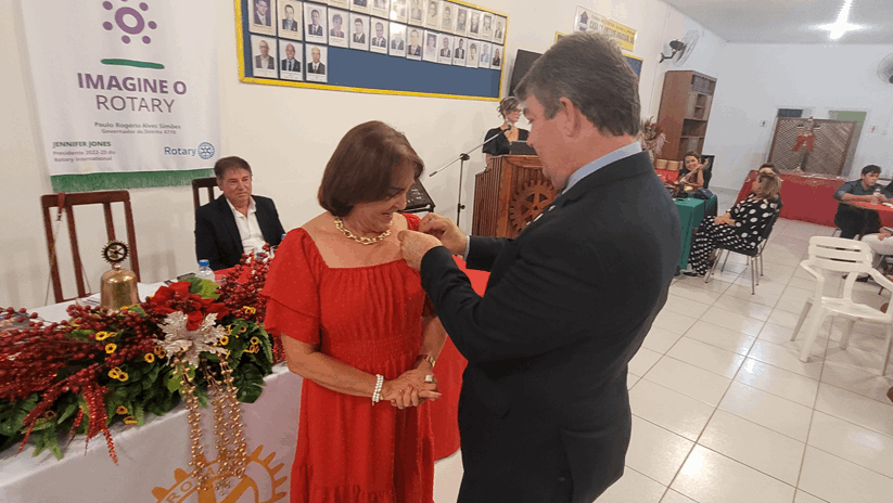 Uma agradável surpresa aconteceu quando a presidente Vanda Lima recebeu das mãos do Governador Paulo Simões, um distintivo dourado de lapela com uma safira, ou seja, um reconhecimento por meio do Título Companheiro Paul Harris, oferecido em homenagem à garra e ao merecimento dessa líder sempre presente, dedicada e excepcionalmente comprometida com a causa rotária, “modelo a ser replicado”. Como disse Paul Harris, “Talvez sonhar não seja tão ruim se sonharmos sonhos bons e fizermos com que eles se transformem em realidade”.