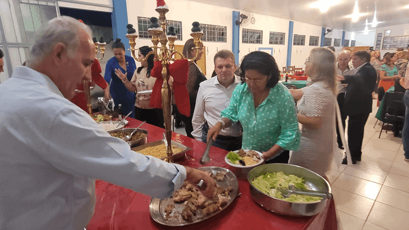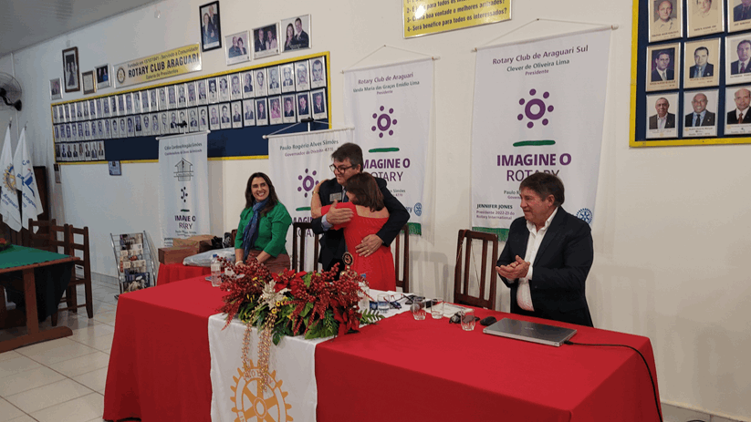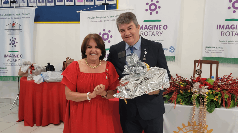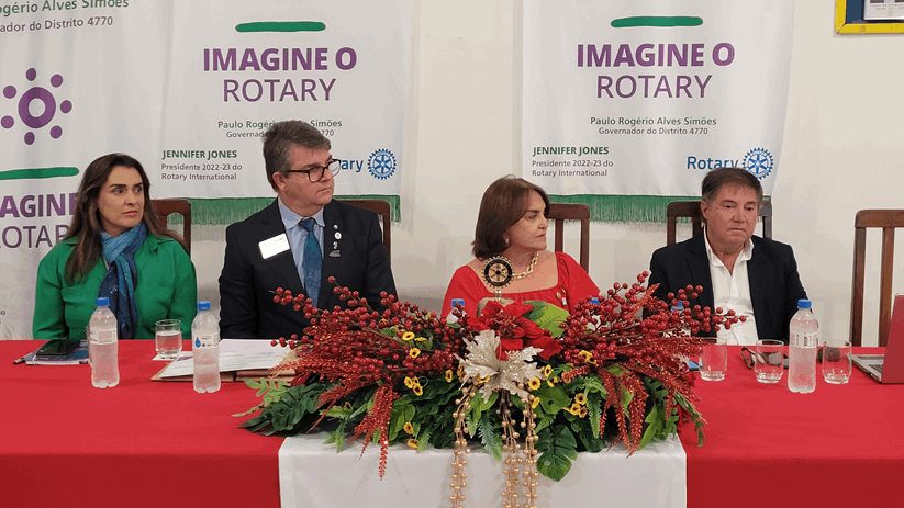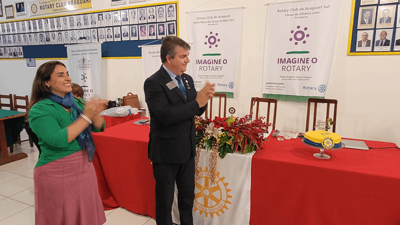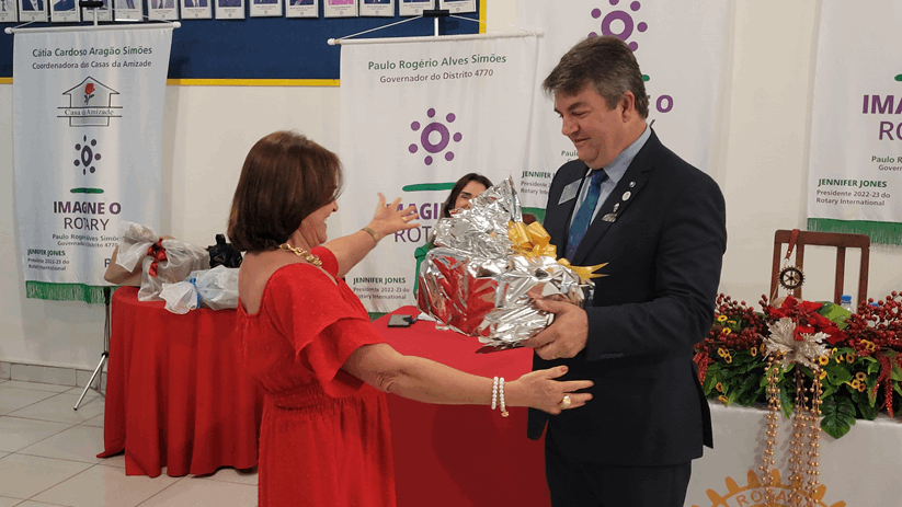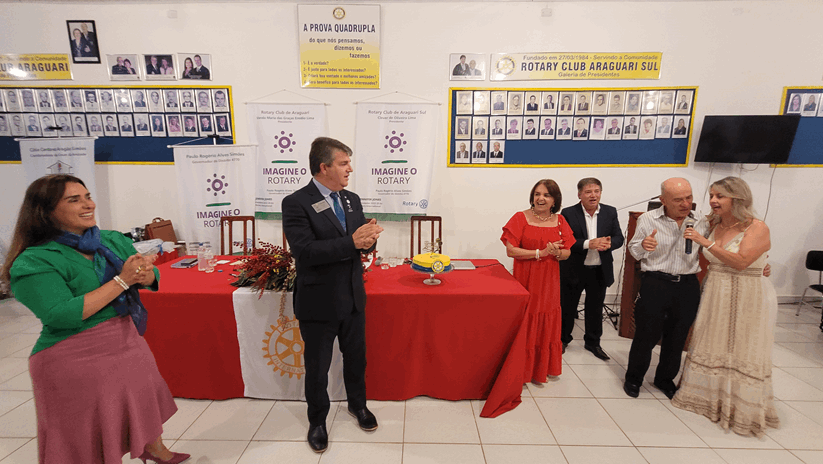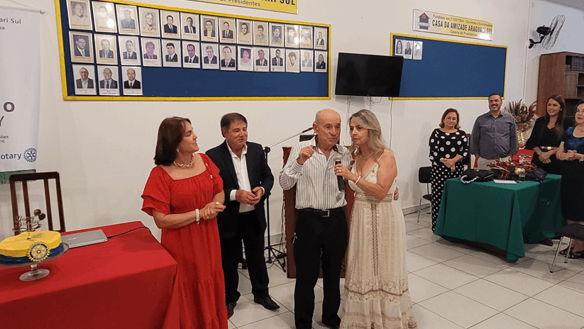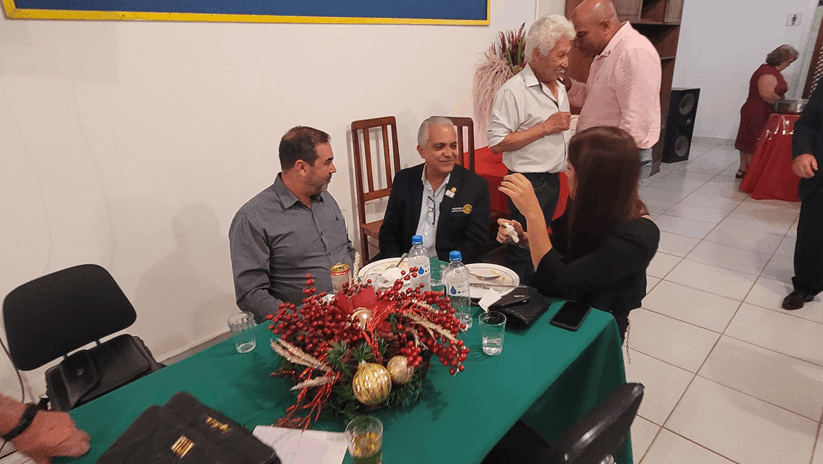 Foram ainda oferecidos muitos mimos, foram feitos muitos agradecimentos, cantou-se o tradicional “Parabéns a você” para o Governador Paulo Simões, aniversariante do dia 1º de dezembro, finalizando-se com a apresentação do nome da companheira Vanessa Klock como presidente do Rotary Club de Araguari, gestão 2023-2024.