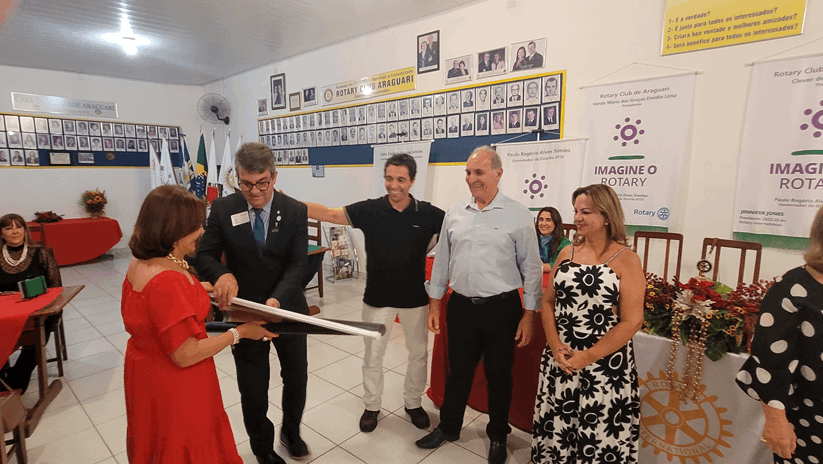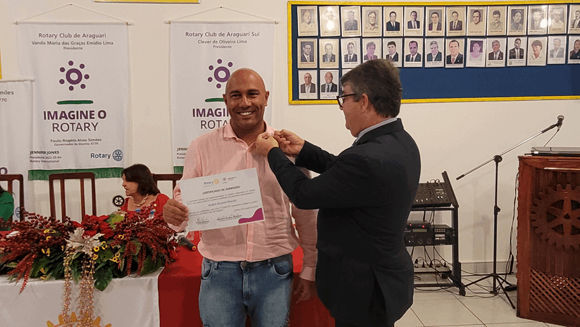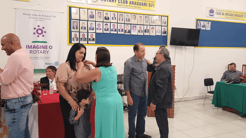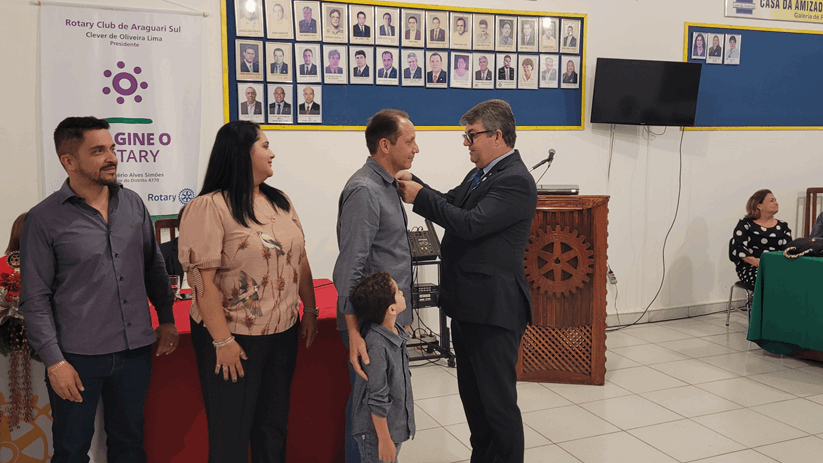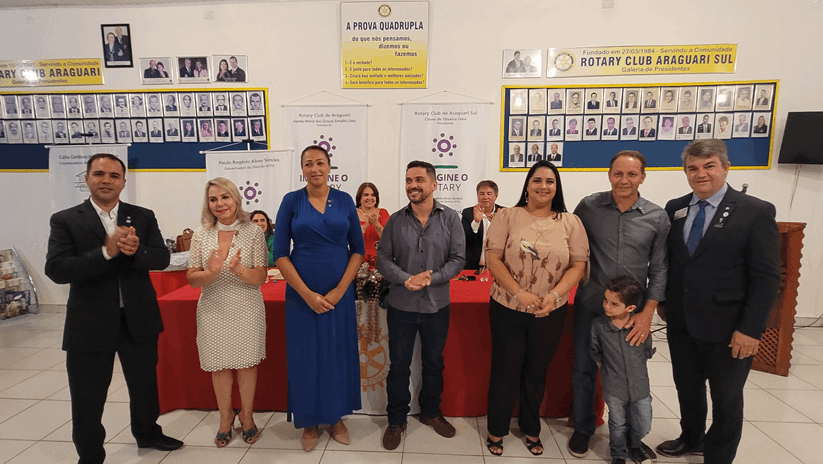 Após a saudação ao Casal Governador, feito pela companheira Janice Gondim, e em atendimento à uma meta estabelecida pela Governadoria, seis novos profissionais tomaram posse como associados do Rotary Club de Araguari: Ana Maria da Costa Silva, Antônio Ferreira de Morais Junior, Cláudio Eustáquio de Moraes Junior, Letícia Hosana Marciano Nunes, Magna Helena Araújo e Sandro Aguiar Nunes.