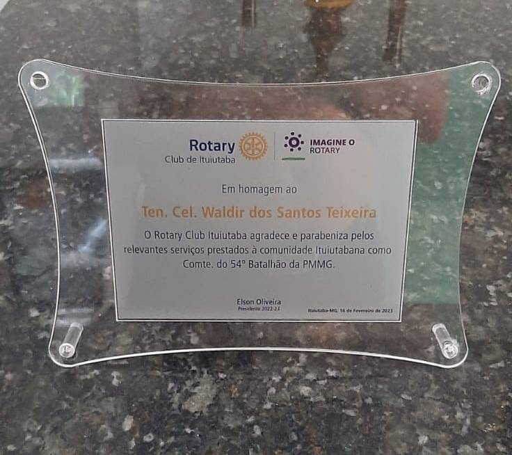 Na ocasião o Rotary Club de Ituiutaba prestou uma homenagem com placas de reconhecimento ao trabalho realizado pelo Ten Cel Waldir e outra placa ao Ten Cel Michel desejando boas vindas e sucesso a frente do Batalhão.