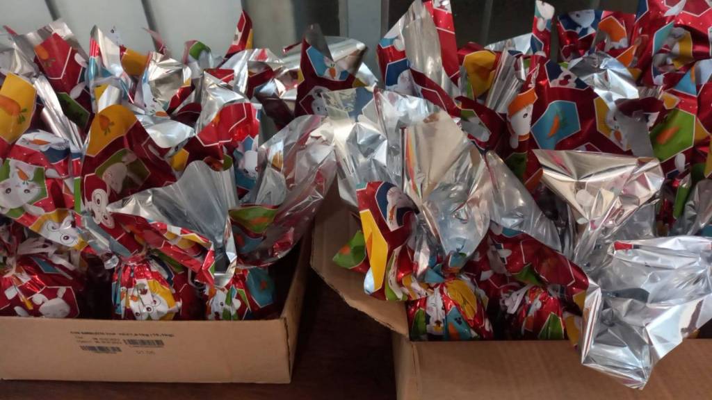 Para confecção dos 400 ovos de Páscoa, uniram-se companheiras(os) rotarianos e companheiro e companheiras da Casa da Amizade. Esse trabalho se iniciou no dia 31 de março à noite, com tamanha dedicação, que todos os ovos ficaram prontos e embalados no dia 03 de abril.