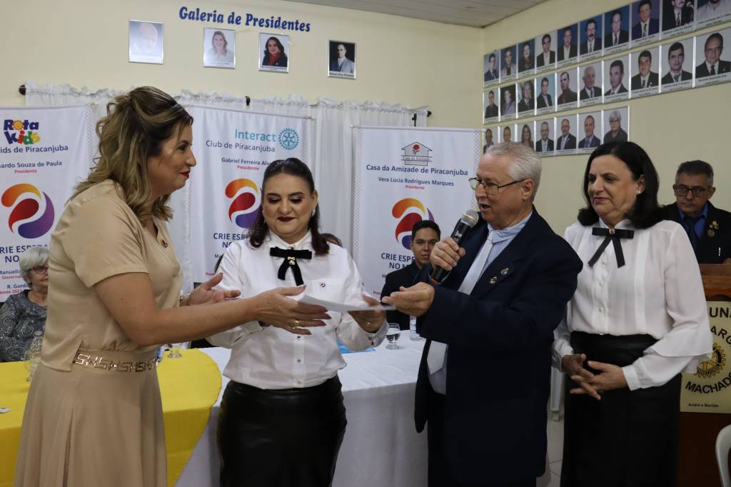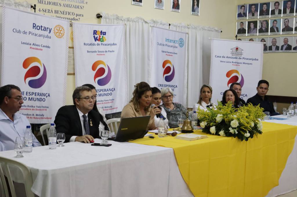 No dia 05 de julho de 2023 foi realizada a Cerimônia de Posse e Transmissão de Cargos para a gestão 2023-24 do Rotary Club de Piracanjuba, Casa da Amizade, Interact Club de Piracanjuba e Rota Kids. Foram empossadas Lenízia Alves Canedo na presidência do Rotary Club de Piracanjuba, Vera Marques na presidência da Casa da Amizade, Gabriel Ferreira na presidência do Interact Club e Bernardo, no ato representado pela vice-presidente Luiza para Presidente do Rota Kids. Os respectivos Conselhos também foram empossados. O Rotary Club de Piracanjuba aumentou o seu quadro associativo admitindo mais um novo membro, Alex Alberto. O evento foi realizado com casa cheia. Muitos convidados e visitantes prestigiaram a Cerimônia de Posse. Parabéns à todos e que Deus abençoe essa nobre missão de servir ao próximo e Criar Esperança no Mundo.