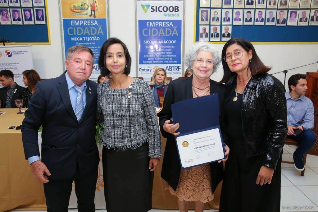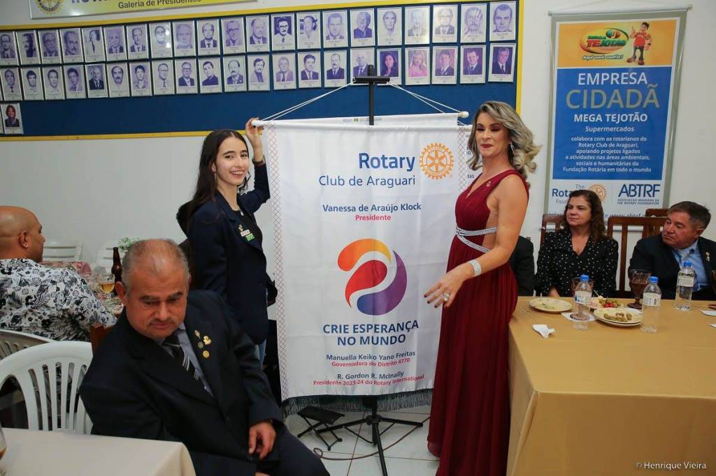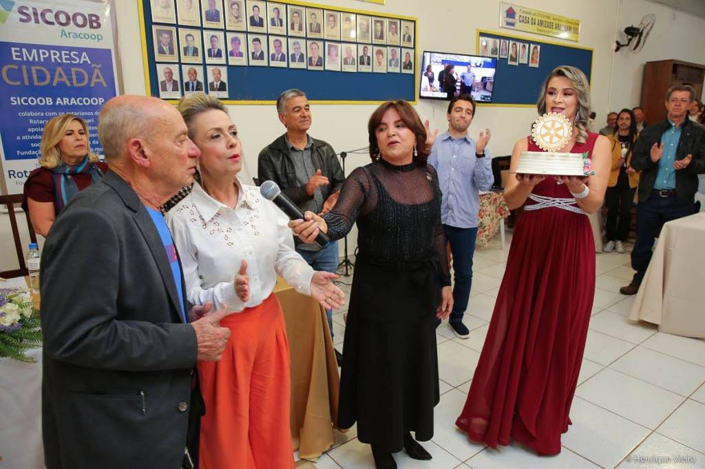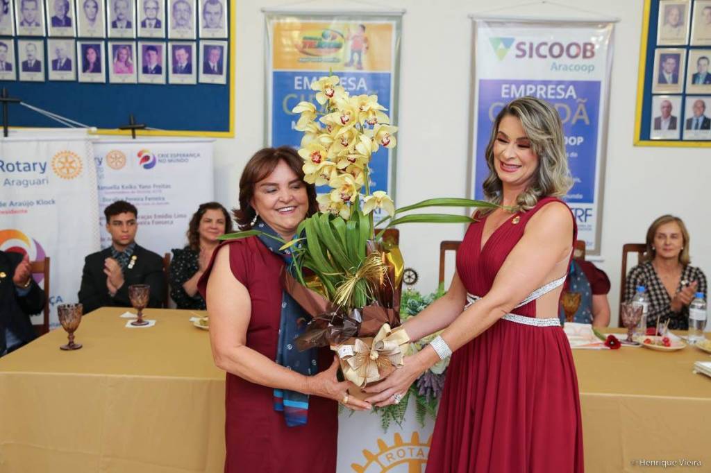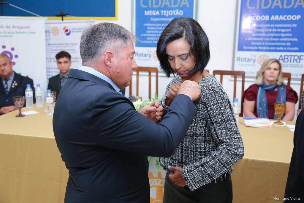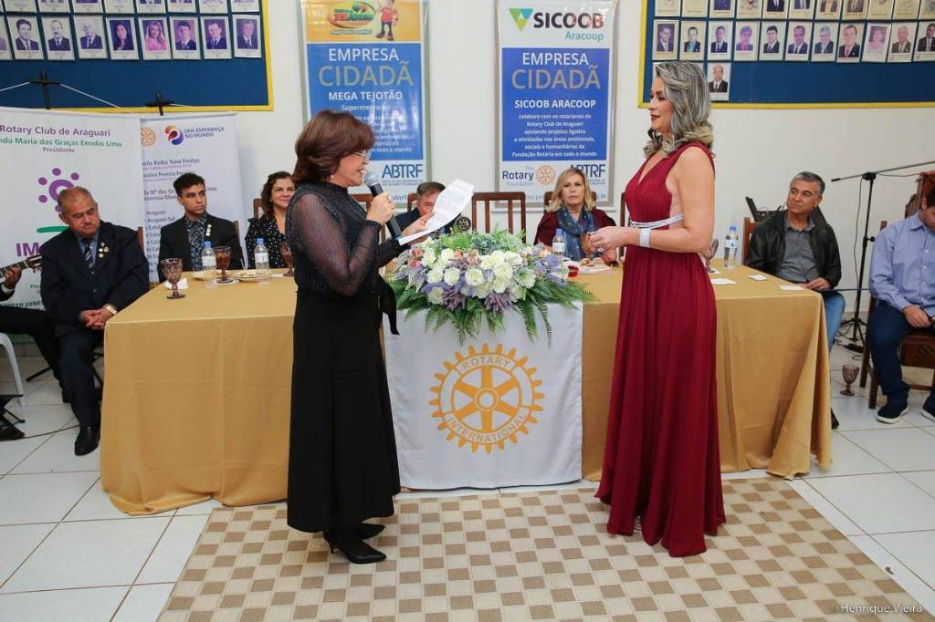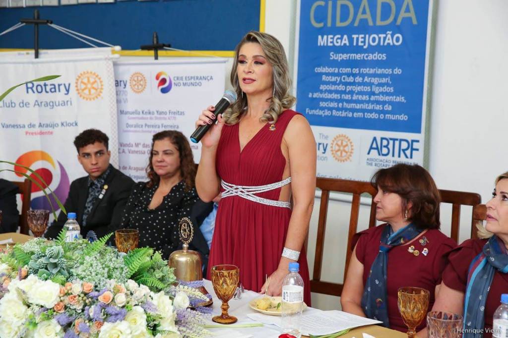 “É uma noite inesquecível para mim. Assumir a presidência do Rotary Club de Araguari significa muito. Além de responsabilidade, compromisso e dedicação, significa coragem e reconhecimento. Estou orgulhosa de representar o meu clube de Rotary, clube este que me recebeu com tanto carinho, que me permite trabalhar e que hoje me honra com a presidência. Saibam, todos vocês, meus companheiros, da minha gratidão pela confiança. Eu já disse e repito, espero não decepcioná-los.