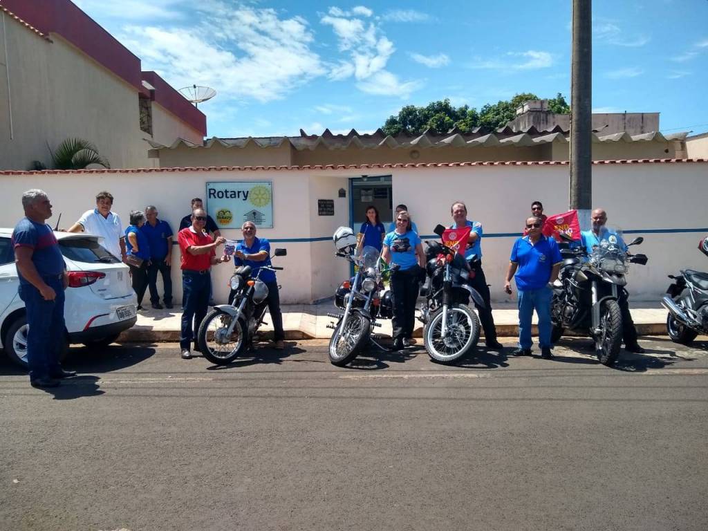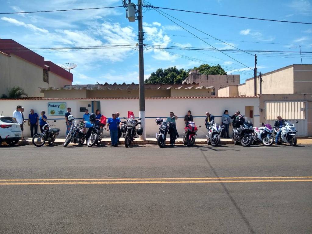 Recepção dos companheiros da comitiva motoqueiros rota 4770 no marco rotário, logo após foi servido um café da manhã na sede do Rotary Club de Tupaciguara.