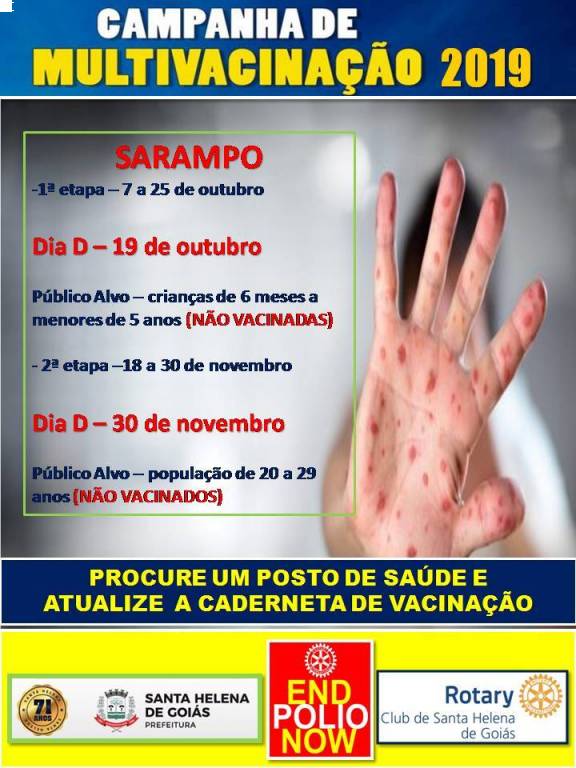 Pensando nisso o Rotary Club de Santa Helena de Goiás realizou pelas principais ruas da cidade o “Pedalada contra a Polio”. Um Passeio Ciclístico para divulgar e mostrar a importância e a necessidade de vacinar as crianças. Evento realizado com a parceria com a Prefeitura Municipal e o Ciclismo de Santa Helena de Goiás.