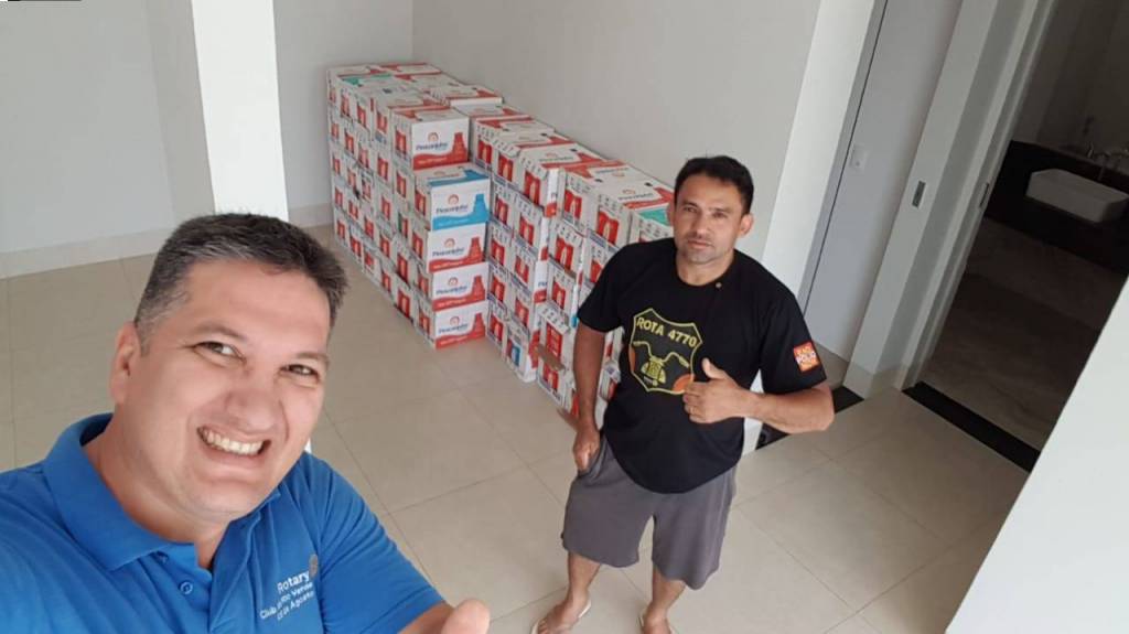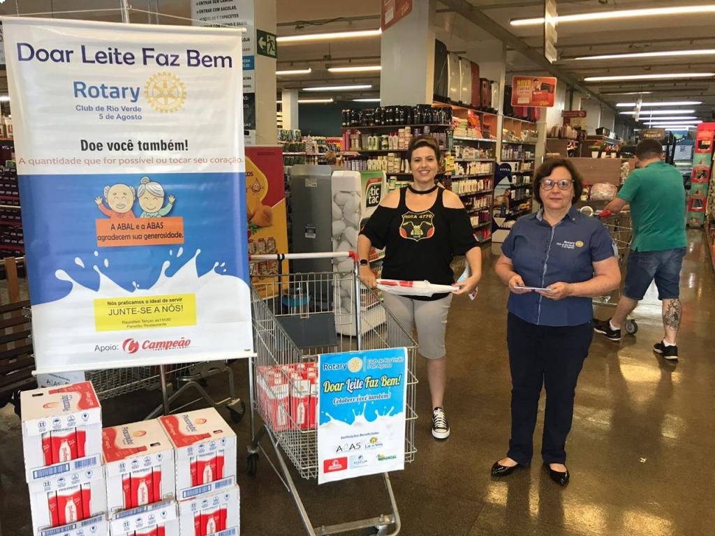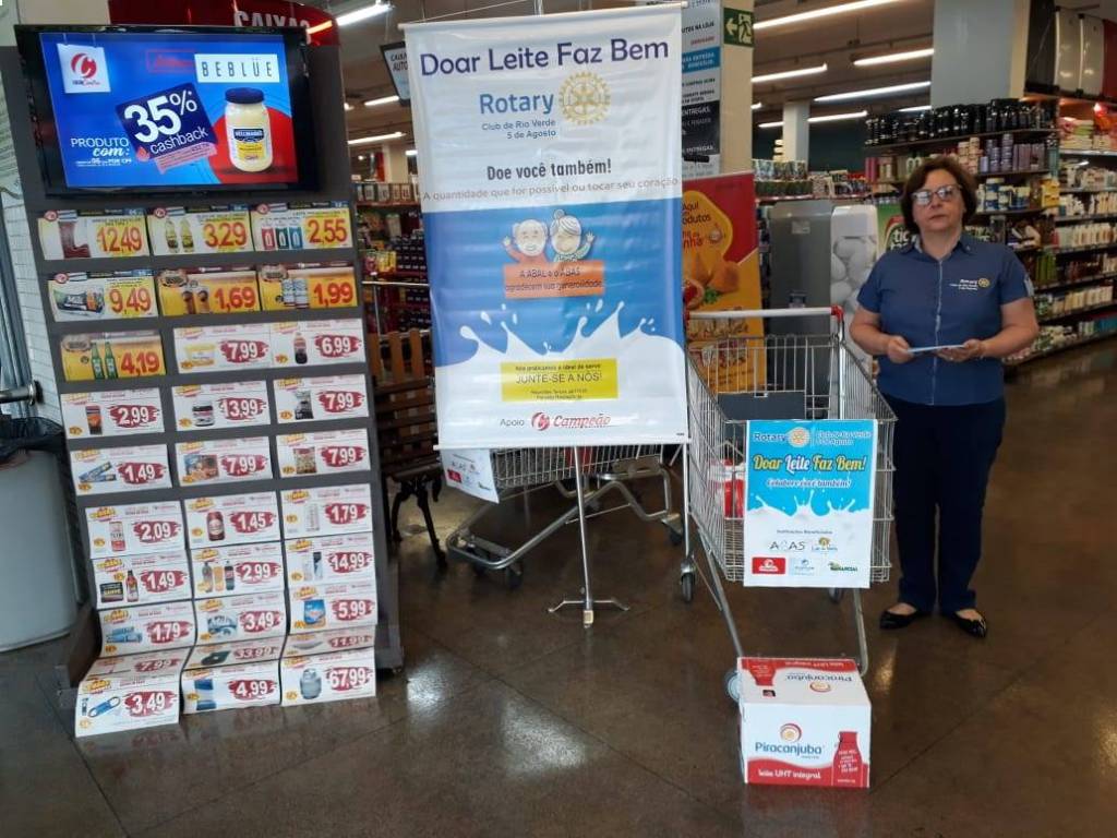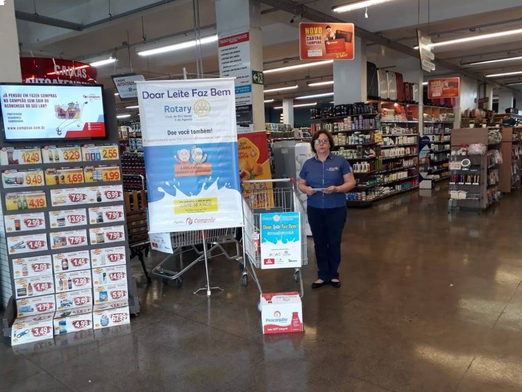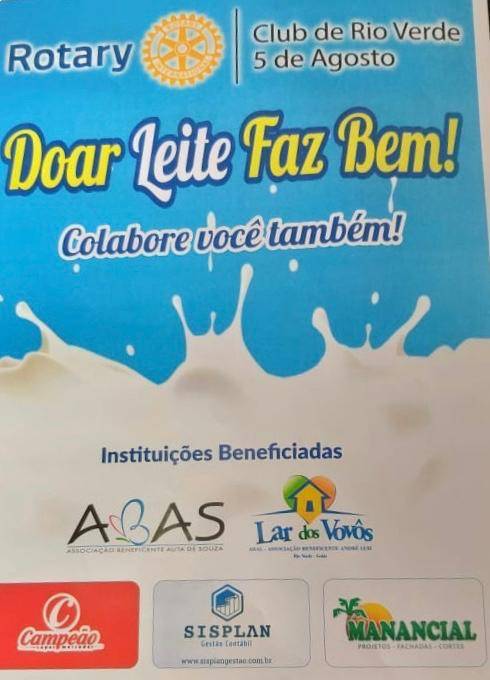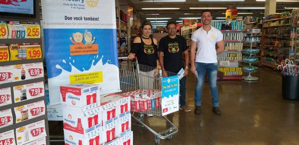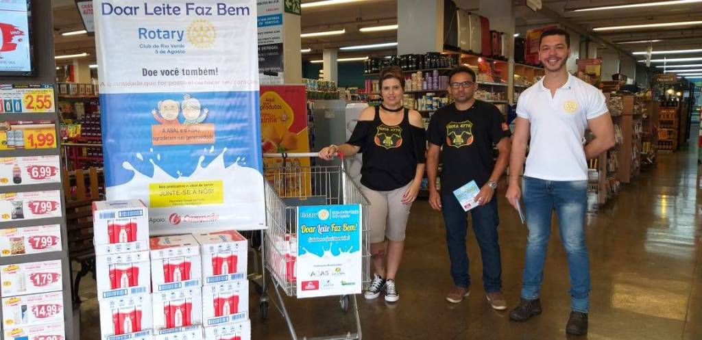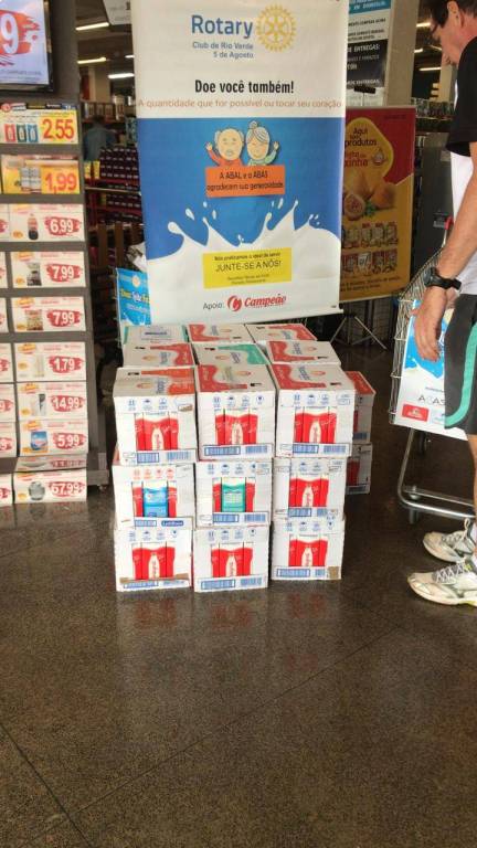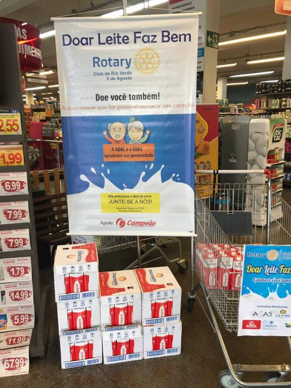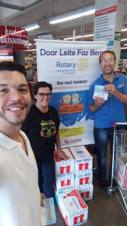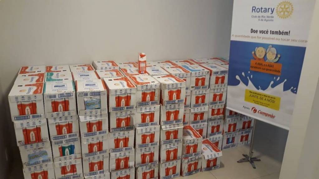 Com apoio do Campeão Supermercados, o Rotary Club Rio Verde 5 de Agosto recebeu doações de 143 caixas de leite para serem doados na ABAS e ABAL.