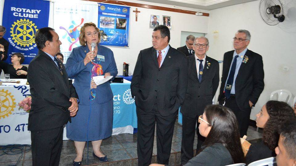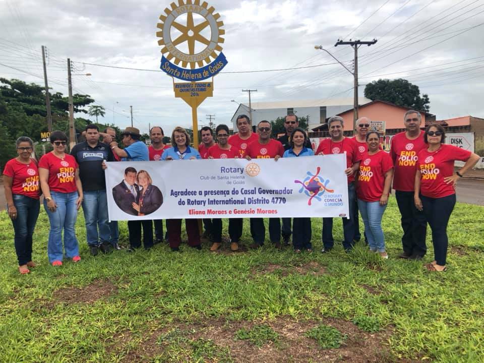 Na quinta-feira (12/12/2019), o Casal Governador do Distrito 4.770 do Rotary Clube do ano rotário 2019/2020, Eliana de Melo Machado Moraes e Genésio, visitou o Rotary Club de Santa Helena de Goiás e cumpriu uma extensa agenda social e de trabalho. O casal foi recepcionado pelos companheiros do Rotary Club de Santa Helena de Goiás no Marco Rotário e começou as atividades com uma entrevista à Rádio Santelenense. Durante a visita o Casal Governador visitou algumas obras que estão sendo realizadas por parceiros de programas desenvolvidos pelo Rotary Club, entre eles a construção de uma creche e Lar dos Idosos. Na oportunidade a Governadora Eliana conheceu de perto o Projeto de Reflorestamento e Nascente do Córrego Pedrãozinho que já dura há dois anos, onde ela plantou duas arvores. O Casal Governador foi recebido pela Primeira Dama Dra. Renata e pelo Vice Prefeito Sr. Agenor, pois o Prefeito Municipal Dr. João Alberto estava viajando. Logo em seguida a Governadora participou de um animado bate papo com o Professor Guto no Programa Academia da Fé na Radio Santelenense onde foram abordados vários assuntos ligados ao trabalho do Rotary local. A visita também serviu para que a Governadora se encontrasse com o Conselho Diretor do Clube local, onde trabalharam as diretrizes para o ano rotário 2019/2020. Já a noite foi marcada por um encontro, onde os rotarianos, visitantes e vários convidados recepcionaram o Casal Governador em uma festiva para celebrar a visita e também dar posse aos novos associados. A Governadora Eliana aproveitou o momento para homenagear aos Companheiros Fabio, Ernesto, Celiomar e Clesistonio que muito contribuíram para os 35 anos que o clube celebrará em 2020 colocando -lhes botons na lapela. Foi um dia muito intenso e de muito companheirismo.