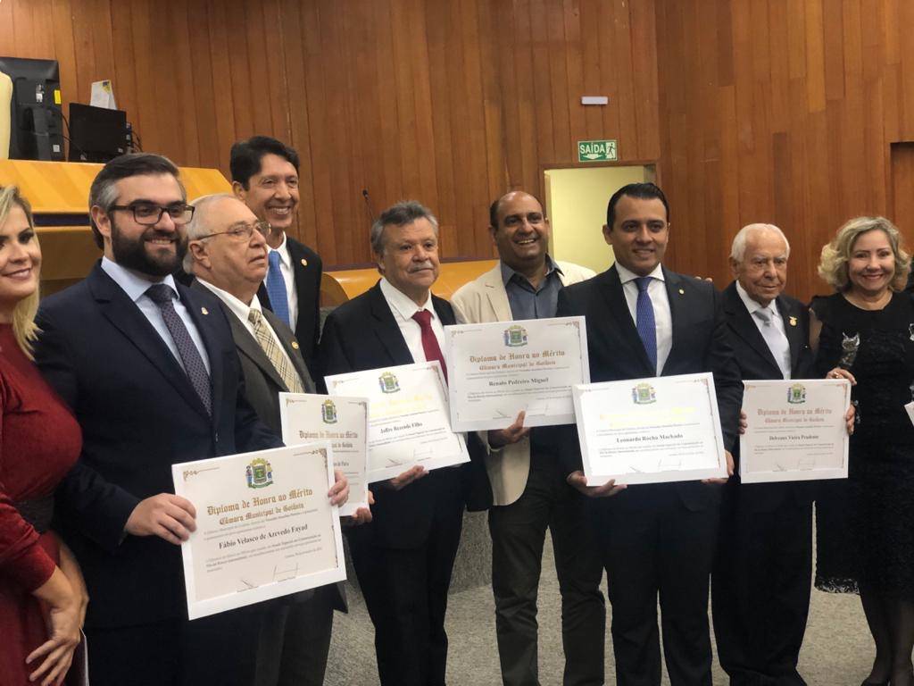 Na solenidade, foram homenageados, com diploma de honra ao mérito, os integrantes do Rotary Club de Goiânia, em reconhecimento aos relevantes serviços prestados ao município.