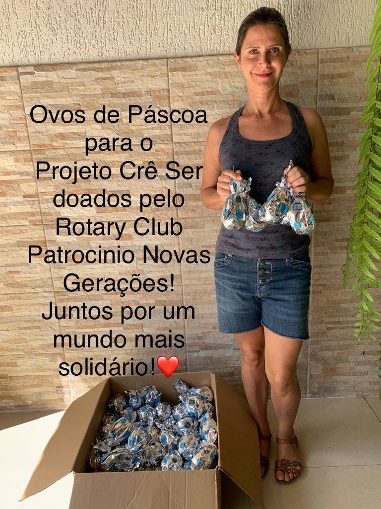 O Rotary Club De Patrocinio Novas Gerações fez uma doação de ovos de páscoa para tornar mais feliz a páscoa das crianças do projeto Crê Ser!