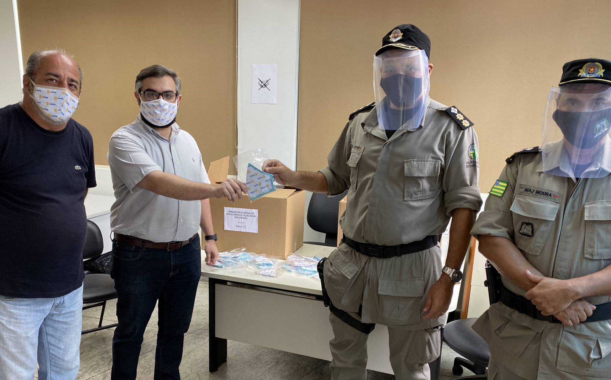 Em mais uma ação da campanha “Todos contra o COVID-19”, o presidente do Rotary Club de Goiânia, Fábio Fayad, efetuou, ao lado do presidente do Rotary Club de Aparecida de Goiânia, Osvaldo Rodrigues, na data de ontem (14/05), a entrega de máscaras reutilizáveis e protetores faciais para o 41° Batalhão de Polícia Militar, em Aparecida de Goiânia, representado pelo comandante Tenente Coronel Antônio e subcomandante Major Moura.