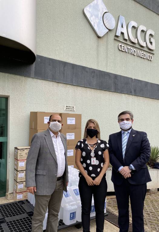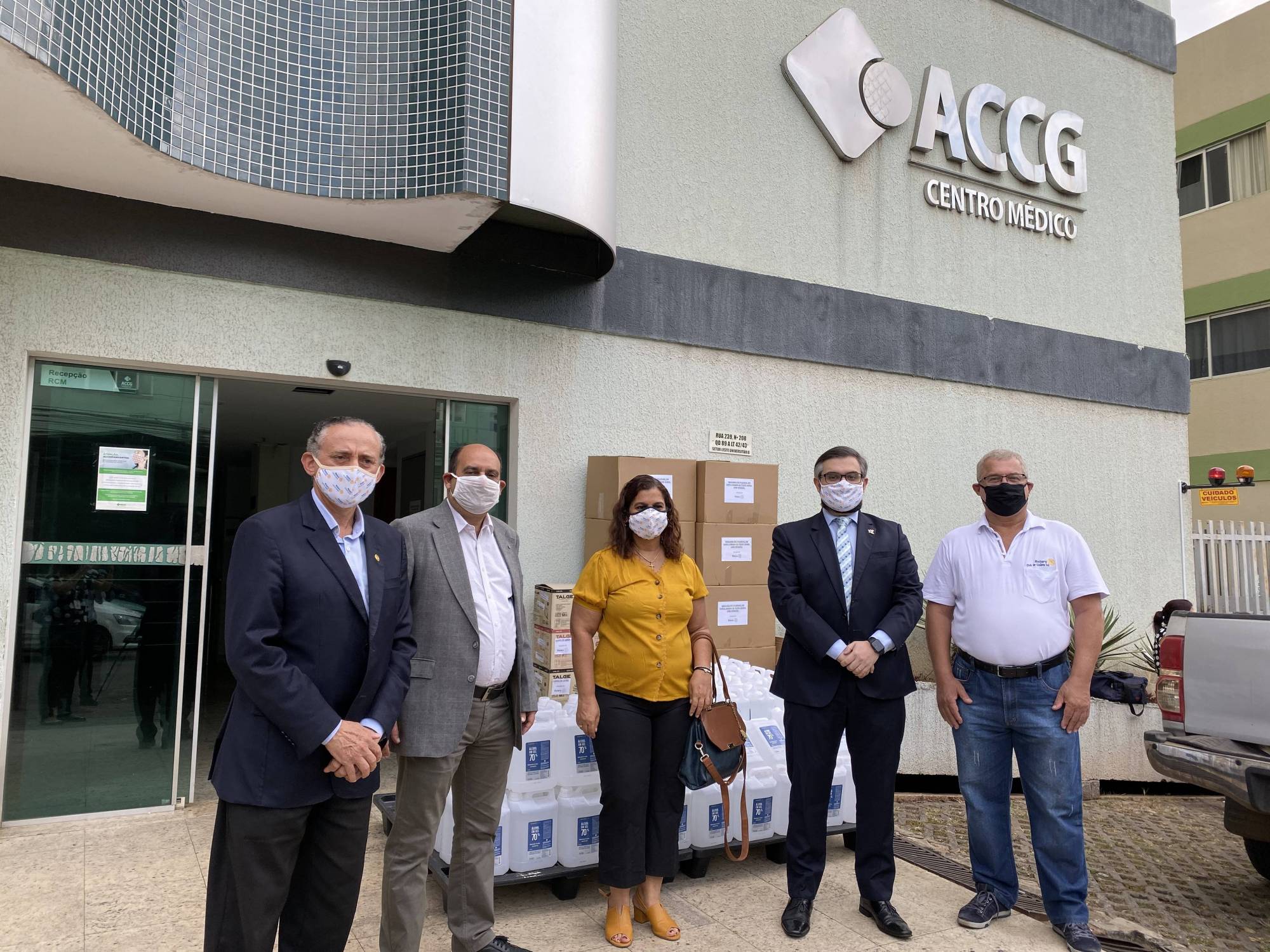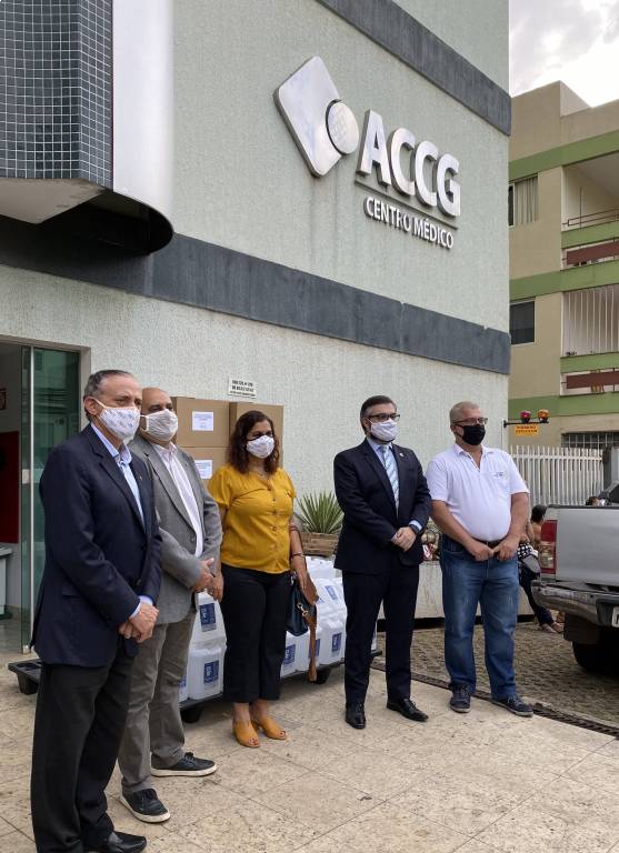 Em mais uma iniciativa da campanha “Todos contra o COVID-19”, coordenada pelo Rotary Club de Goiânia, com o apoio do Rotary Club de Goiânia-Oeste, Rotary Club de Goiânia-Sul, Rotary Club de Goiânia-Rio Araguaia, Rotary Club de Aparecida de Goiânia e Rotary Club de Bela Vista, o Hospital de Câncer Araújo Jorge recebeu hoje, por meio da Associação de Combate ao Câncer em Goiás, a doação de cinco mil máscaras reutilizáveis, cinco mil luvas de látex, quinhentos litros de álcool em gel e quatrocentos protetores faciais.