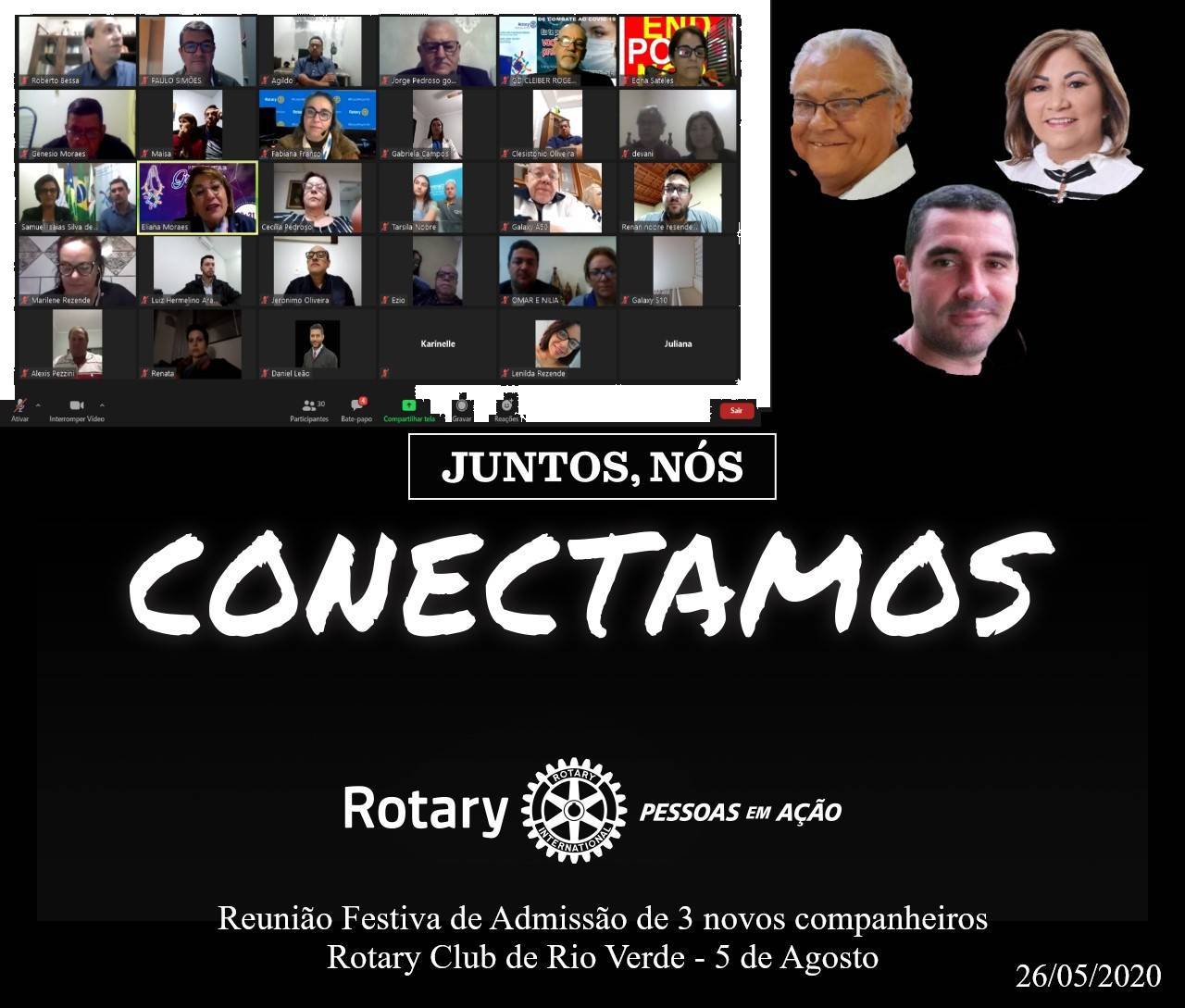 No dia 26/05/2020 o Rotary Club Rio Verde 5 de Agosto teve a honra de admitir em seu quadro associativo novos sócios: Samuel de Campos, Lourival Girotto e Devani Girotto. Na oportunidade foi realizado Reunião Virtual Festiva de Admissão de Novos Associados , e contamos com várias autoridades rotárias e companheiros de diversos clubes do Distrito 4770. O Rotary Club Rio Verde 5 de Agosto, agradece a todos que prestigiaram nossa Reunião Festiva de Admissão de Sócios e convida para nossas futuras reuniões virtuais, às terças-feiras às 20h através o Zoom.