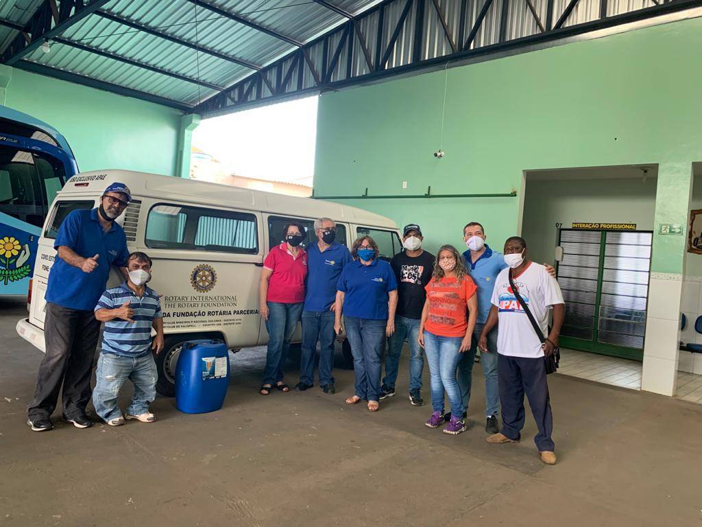 Em parceria com a empresa Atvos Agroindustrial S/A, nosso clube recebeu da empresa parceira, 400 litros de Álcool líquido 70%, para fazer a destinação às entidades filantrópicas de Mineiros. Os membros do clube fizeram o preparo e envase do material para distribuição. Foram destinados às seguintes entidades de Mineiros: