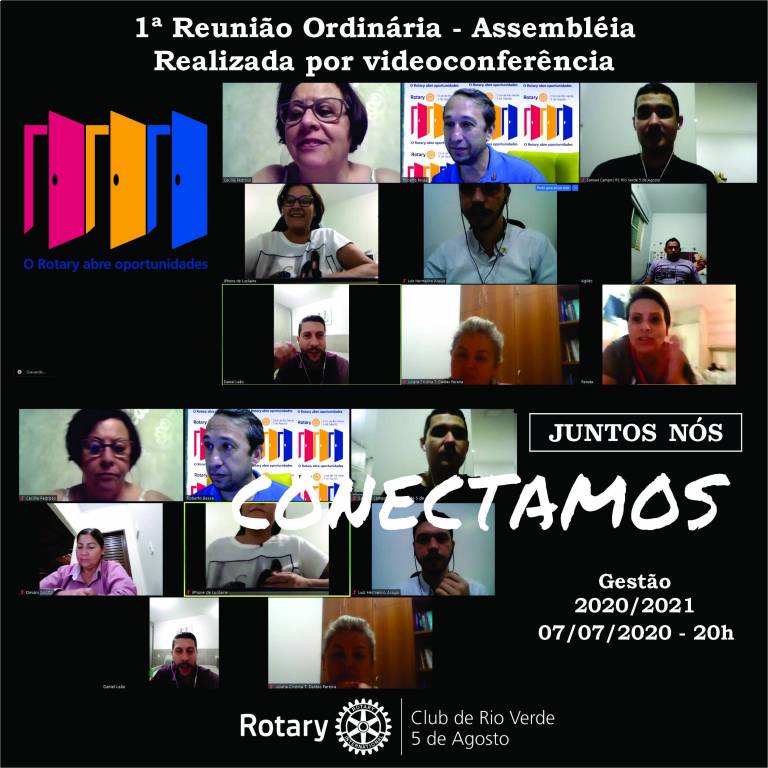 No dia 07/07/2020 o Rotary Club Rio Verde 5 de Agosto realizou sua 1ª Reunião Ordinária - Assembléia por videoconferência. Tivemos como pauta a Assembléia de Planejamento para ano Rotário 2020/2021. Convidamos para nossas futuras reuniões virtuais, às terças-feiras às 20h através o Zoom.