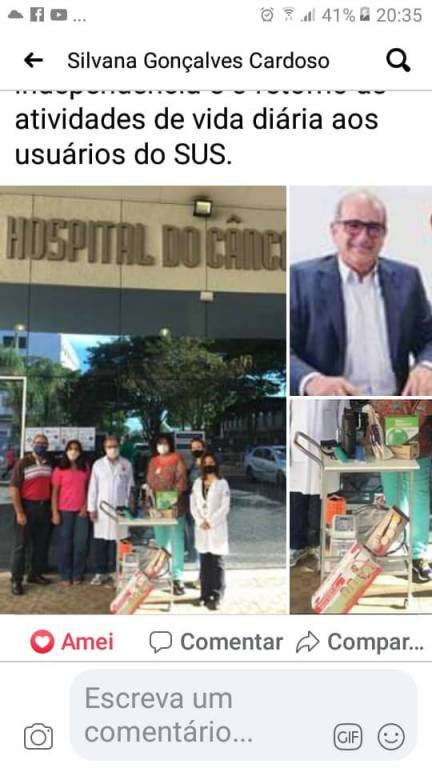 Hoje nossa presidente Lucia teve a oportunidade de encerrar mais um projeto social de grande impacto e ajuda a nossa comunidade. A entrega dos equipamentos de fisioterapia, q faltava no amb de fisioterapia do hosp do Câncer do Hosp Clinica da UFU - Univ Federal de Uberlândia, cujo objetivo é minimizar sequelas de tratamento de combate ao câncer e aos usuarios do SUS de nossa cidade e região, classificado na área de enfoque de prevenção e combate a doenças. Para fazermos o bem, não existe crenças limitantes, e nem pandemia q possam nos impedir de ajudar e fazer o bem.