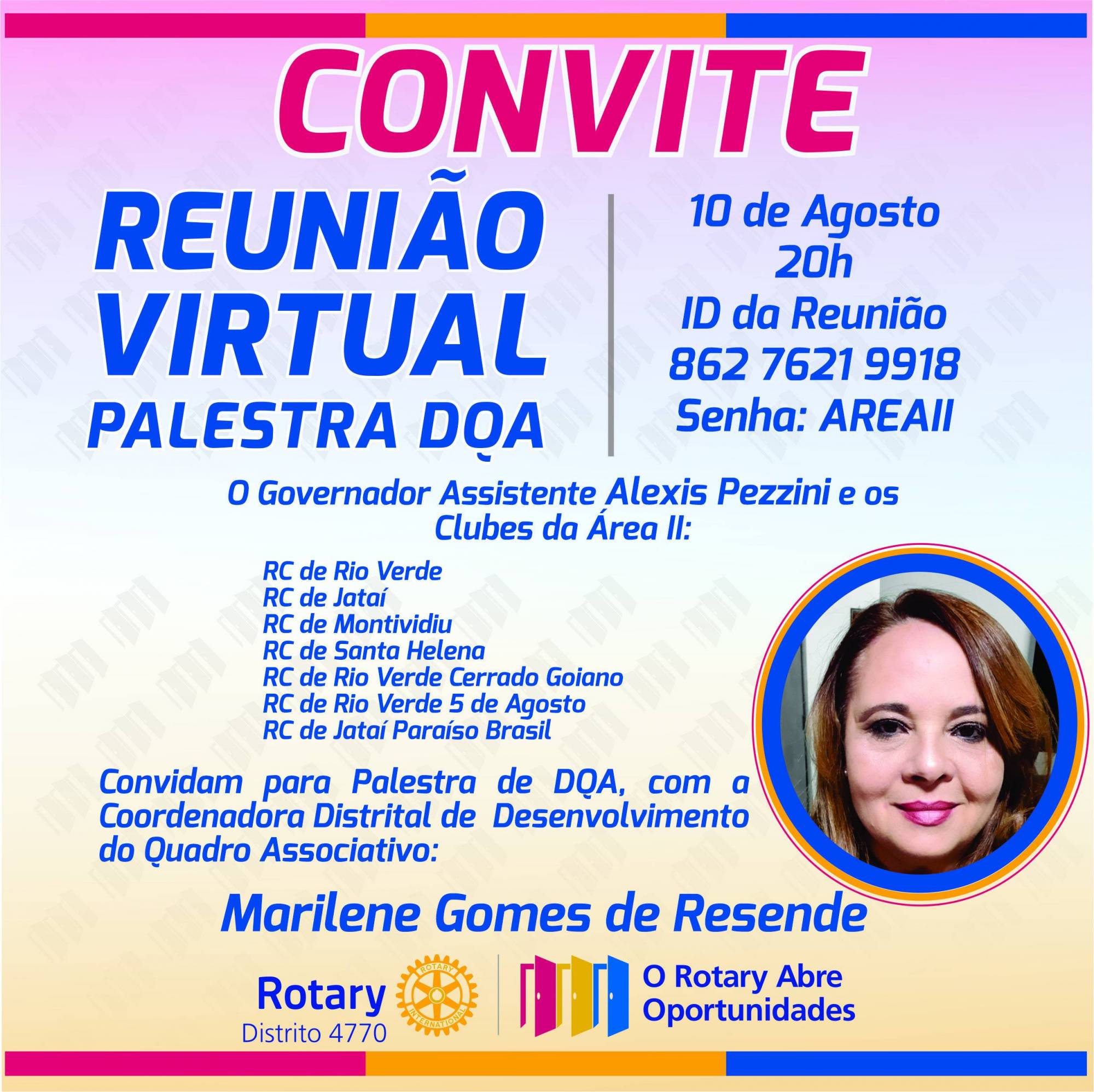 No dia 10/08/2020, às 20h, o Governador Assistente Alexis Pezzini e os Clubes da Área II: