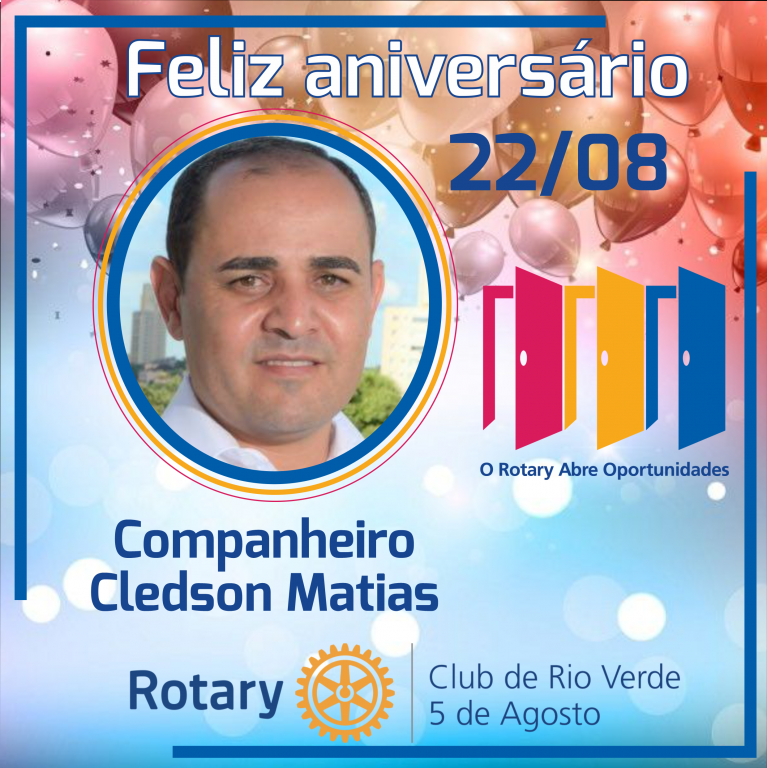 No 22/08/2020 comemoramos o aniversário do nosso companheiro Cledson Matias. Parabéns e Muitas felicidades! #rotary5deagosto #rotaract #rotaryclub #rotaryinternational #rotarybrasil #rotarybrazil #rotariano #endpolionow #distrito4770 #interact #rotariano #