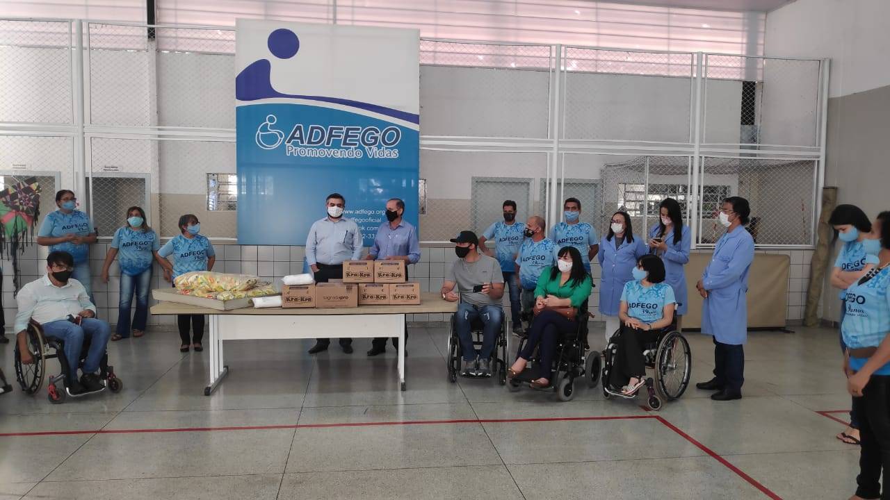 O presidente do Rotary Club de Goiânia, o advogado Fábio Fayad, esteve dias atrás na sede da Associação dos Deficientes Físicos do Estado de Goiás – ADFEGO, onde foi recebido pela presidente Maria Clara Carvalho e demais membros da diretoria, que apresentaram toda a estrutura e o funcionamento da instituição. Na ocasião, Fábio reconheceu o brilhante trabalho desenvolvido pela ADFEGO e efetuou a entrega de alimentos, produtos de limpeza, máscaras e álcool em gel, frutos da doação de rotarianos e empresas parceiras, como Sagrada Pro e Exa Kernel, dentre outras.