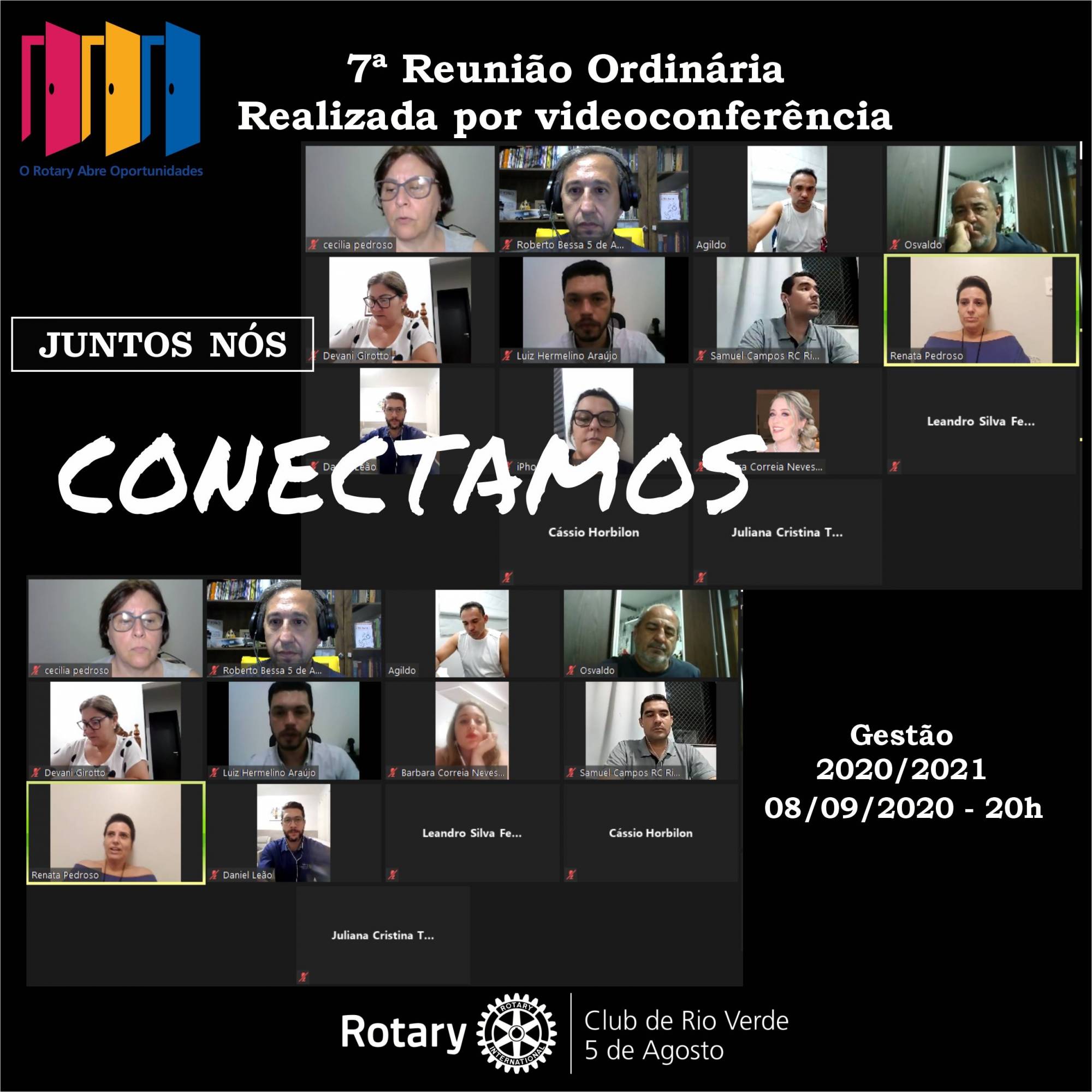 No dia 08/09/2020 o Rotary Club Rio Verde 5 de Agosto realizou sua 7ª Reunião Ordinária por videoconferência. Tivemos como pauta