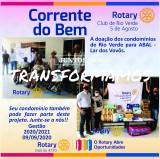 Este projeto visa que cada condomínio de Rio Verde possa fazer sua doação mensal ao Rotary Club de Rio Verde 5 de Agosto, e assim coletamos e organizamos a entrega na ABAL - Lar dos Vovôs. Se cada uma puder fazer sua doação, juntos faremos uma grande doação.