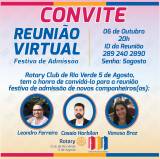 O Rotary Club de Rio Verde 5 de Agosto tem a honra de convidá-lo para reunião festiva de admissão de novos companheiros(as):
