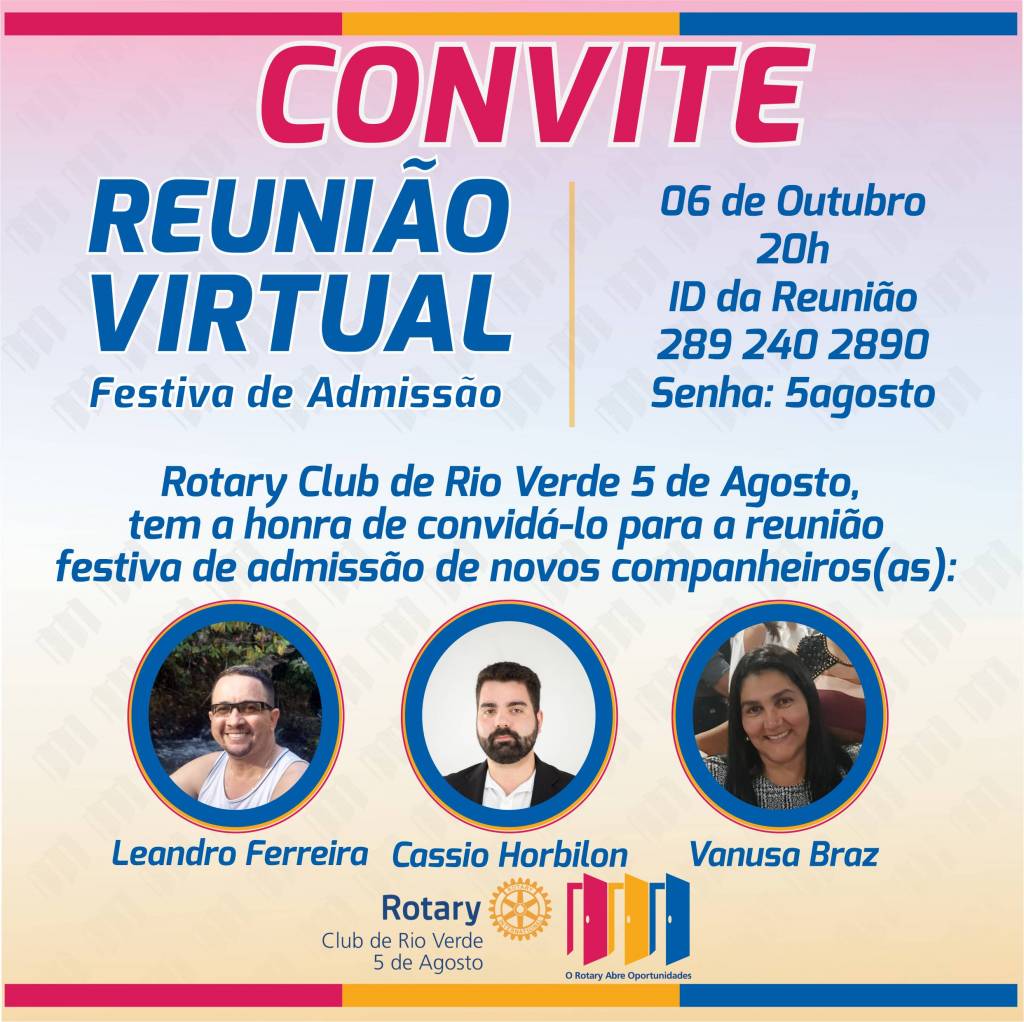 No dia 06/10/2020 o Rotary Club Rio Verde 5 de Agosto realizou sua 11ª Reunião Ordinária por videoconferência. Tivemos como pauta