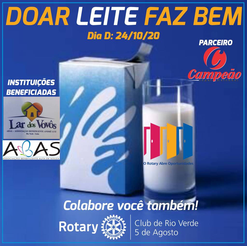 O Rotary Club de Rio Verde 5 de Agosto iniciou o mês de outubro com a campanha de arrecadação de Leite para as instituições: ABAL e ABAS.