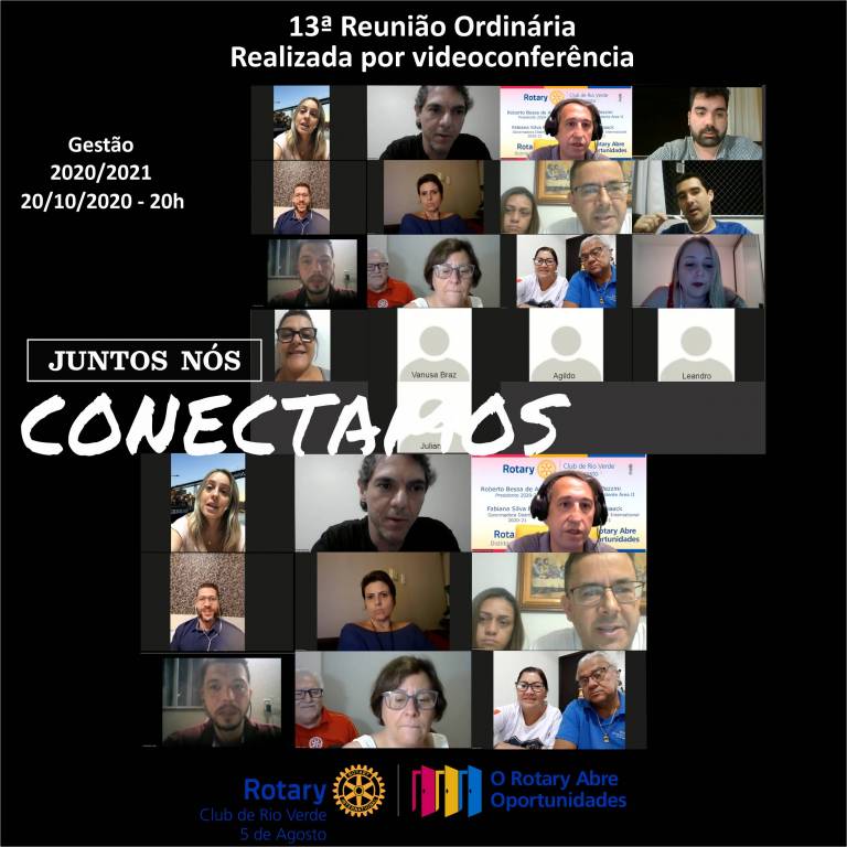 No dia 20/10/2020 o Rotary Club Rio Verde 5 de Agosto realizou sua 13ª Reunião Ordinária por videoconferência. Tivemos como pauta