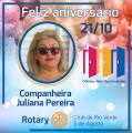 No dia 21/10/2020 comemoramos o aniversário da nossa companheira Juliana Pereira. Parabéns e Muitas felicidades! #rotary5deagosto #rotaract #rotaryclub #rotaryinternational #rotarybrasil #rotarybrazil #rotariano #endpolionow #distrito4770 #interact #rotariano #rotarianoemacao #orotaryabreoportunidades #rioverdegoias #rotary #conectamos #inspiramos #aprendemos #transformamos